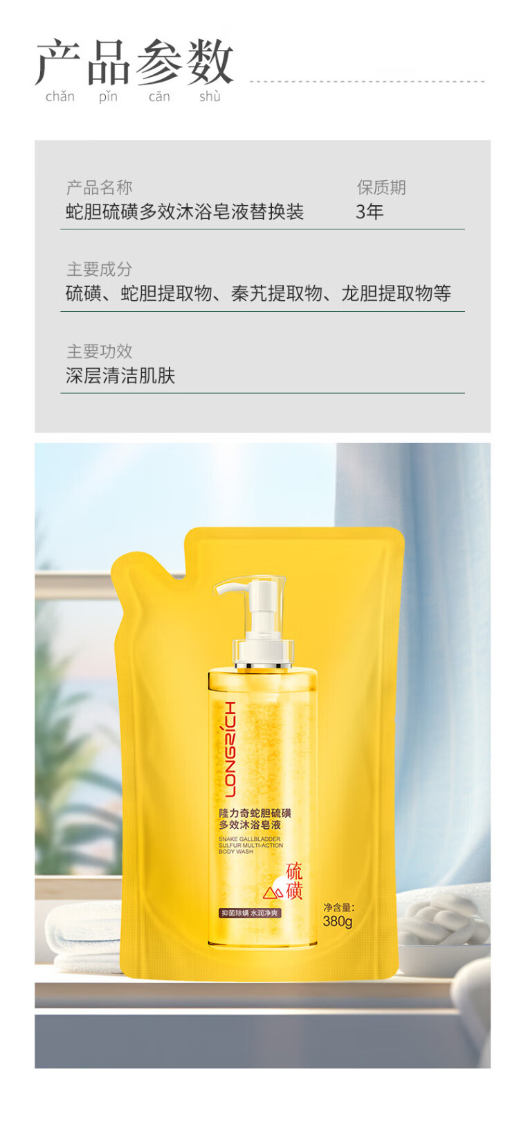 Longliqi 380g snake gall sulfur multi-effect bath soap (refill)