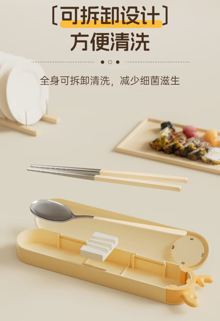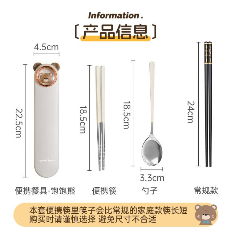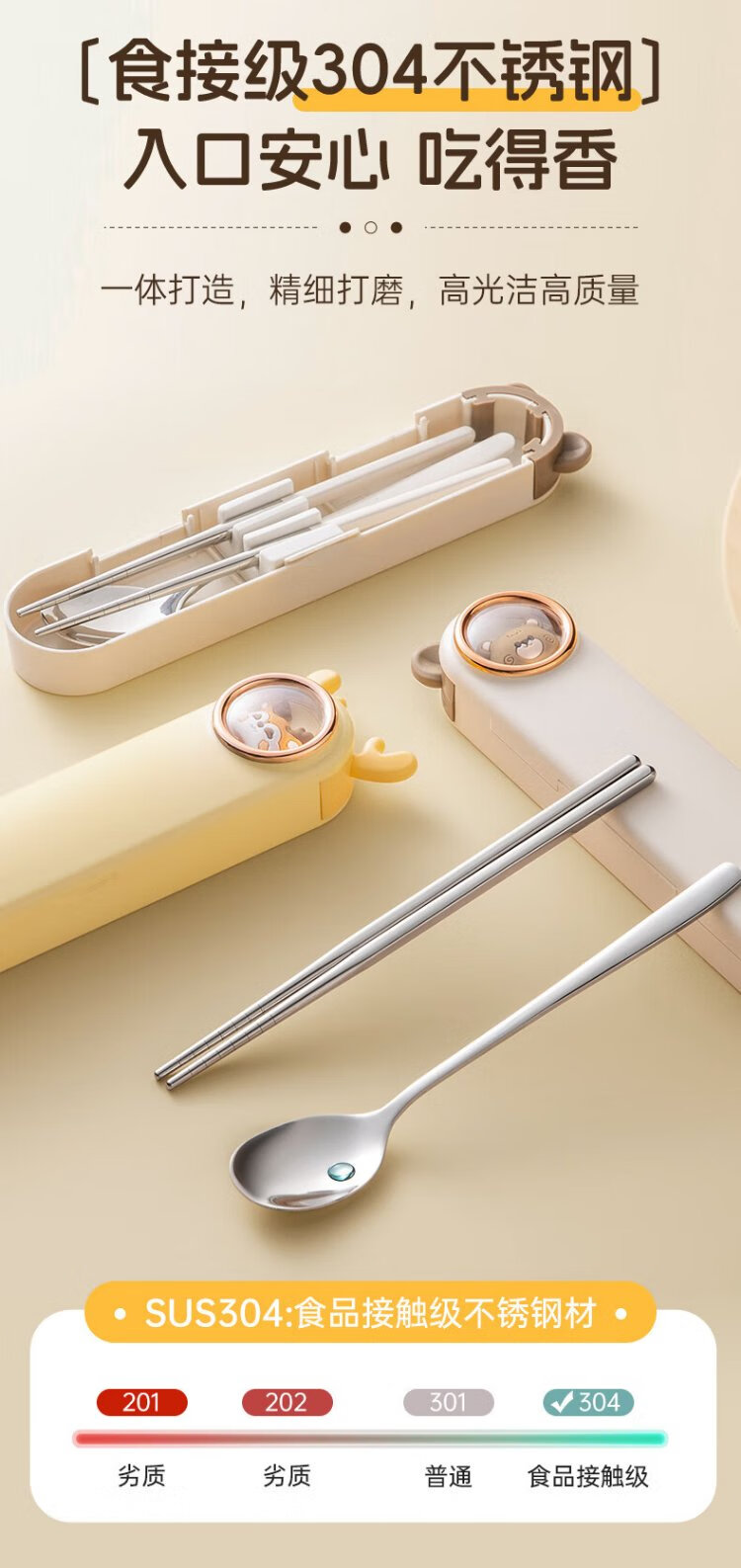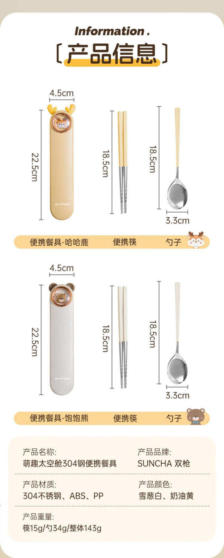 Double gun 304 stainless steel chopsticks and spoon set portable cutlery box complete set for children, students and office workers