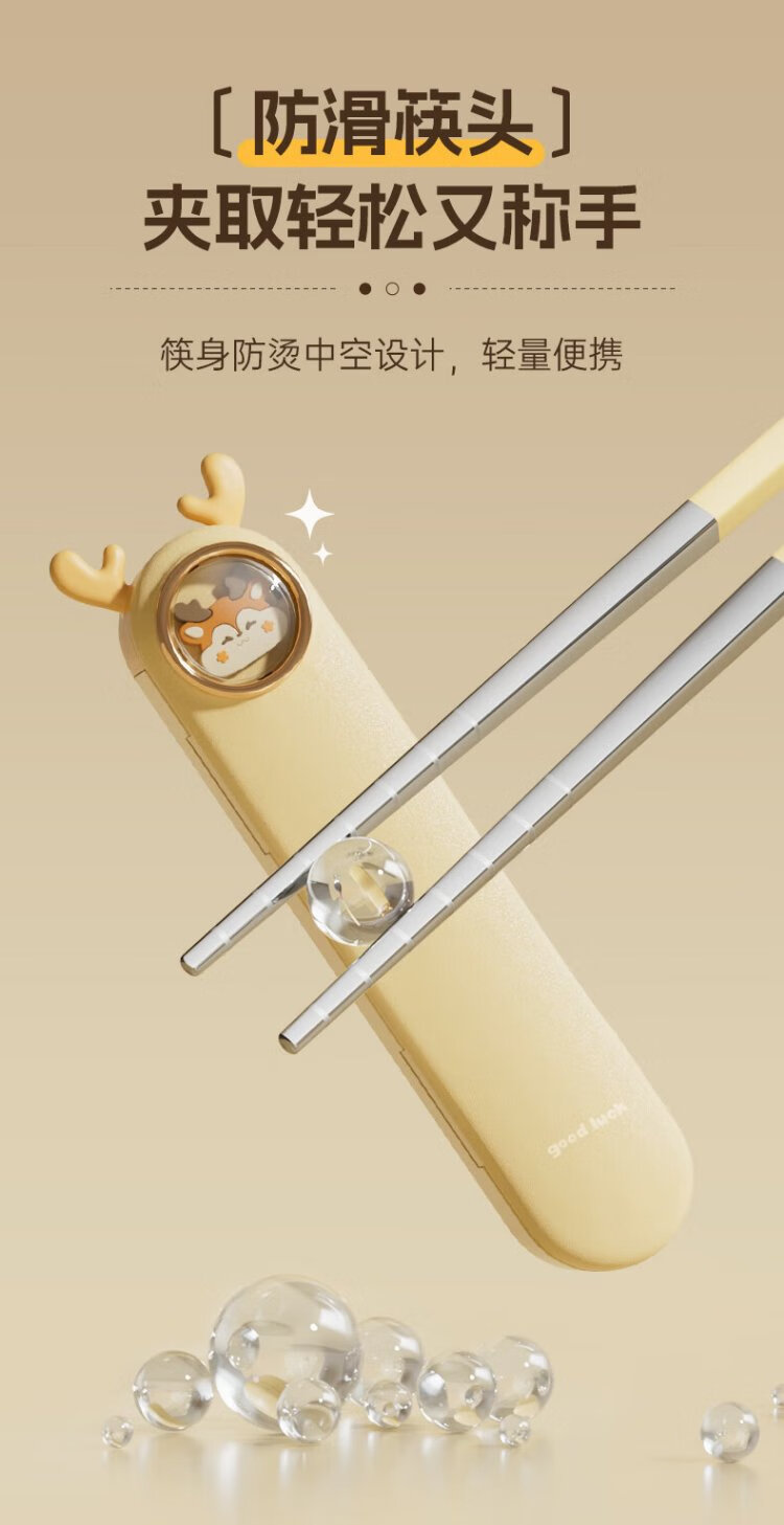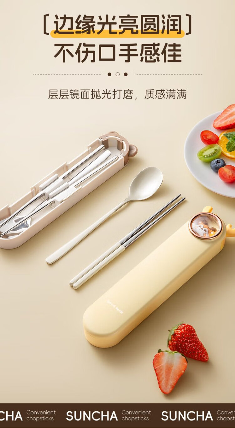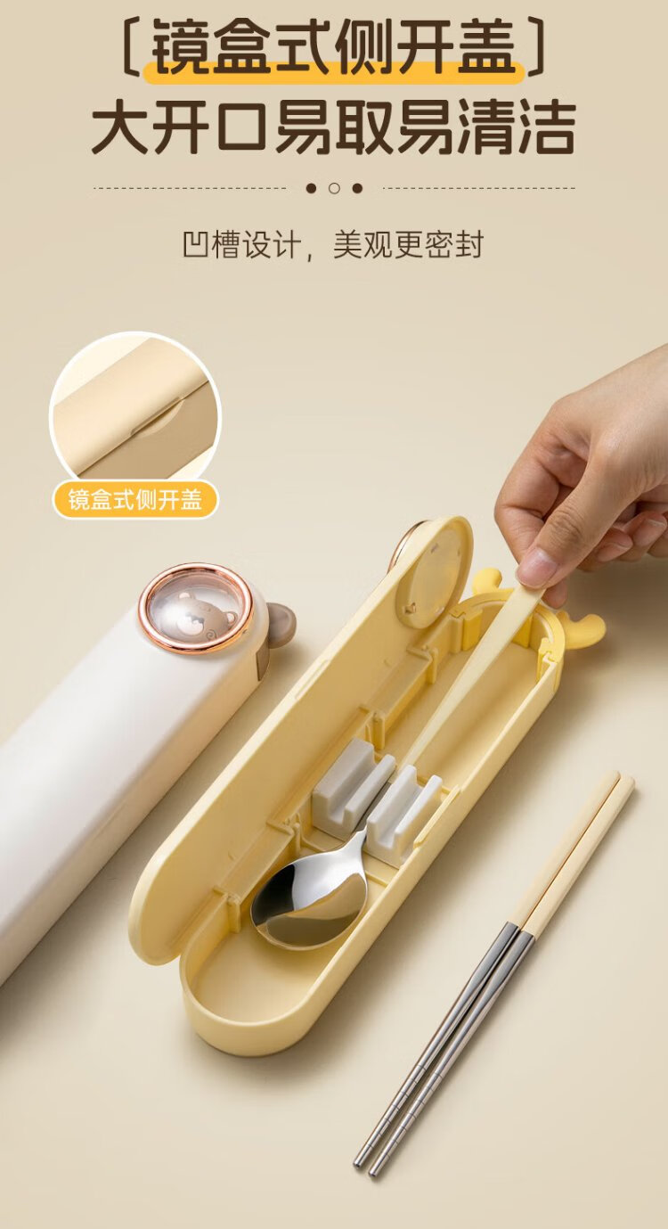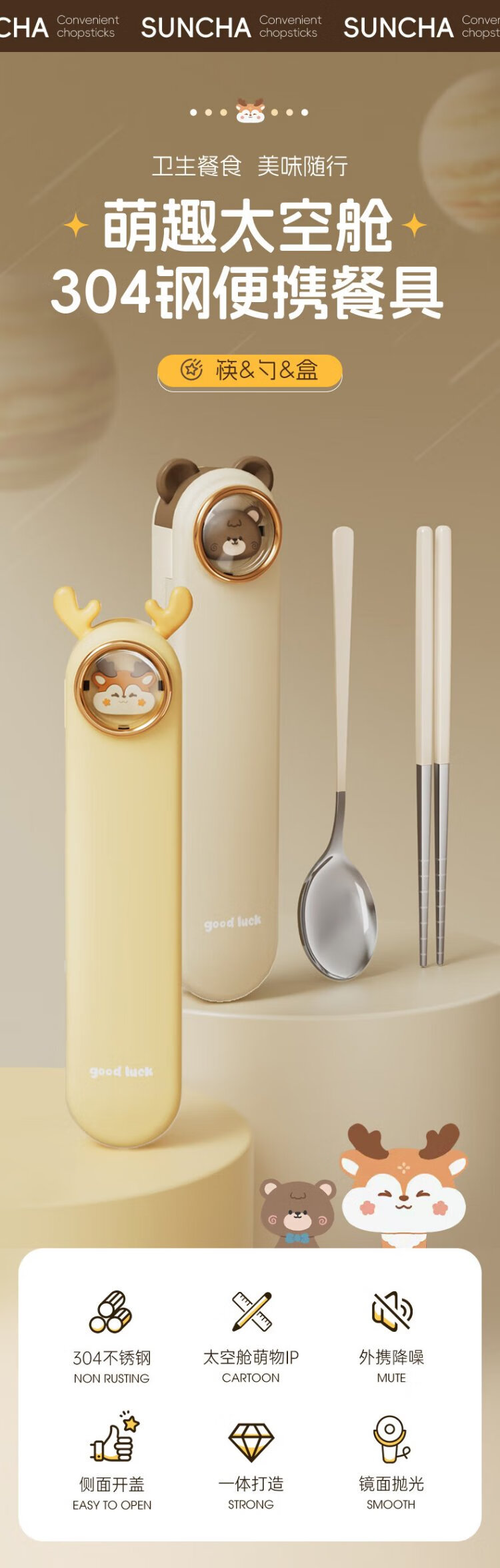 Double gun 304 stainless steel chopsticks and spoon set portable cutlery box complete set for children, students and office workers