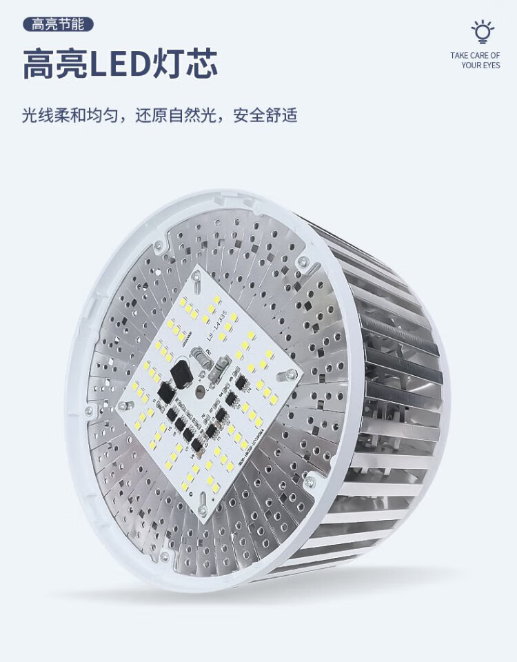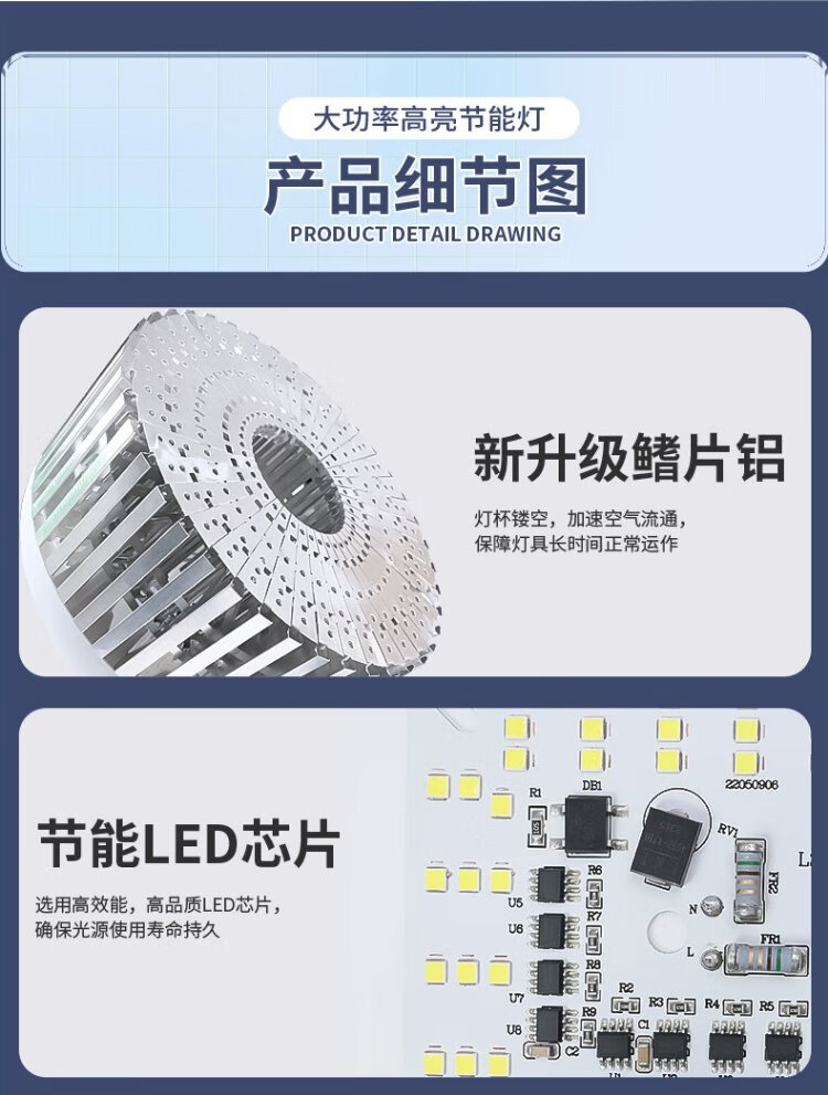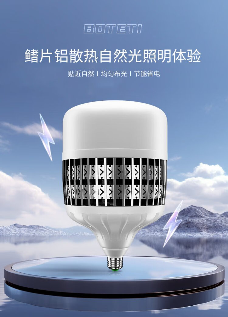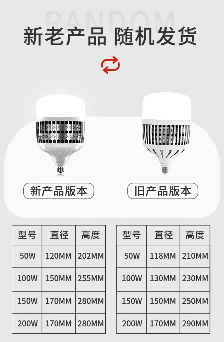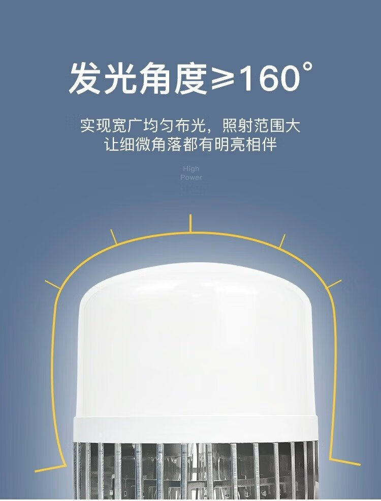 Platinum LED bulb E27 high-power high-brightness energy-saving lamp fin aluminum construction site workshop lighting super bright bulb 50W
