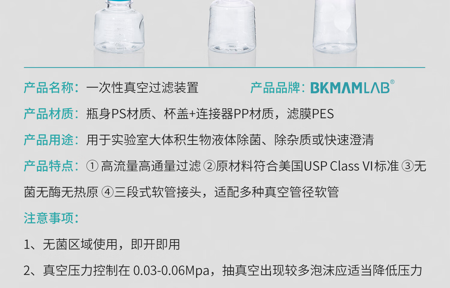 BKMAM Vacuum Filter Laboratory Disposable Bottle Sterile Top Filtration Device 1000/1000 Set Connector 0.22 m