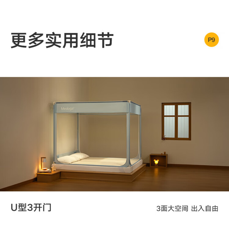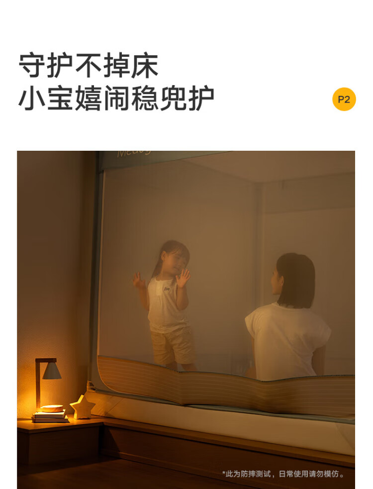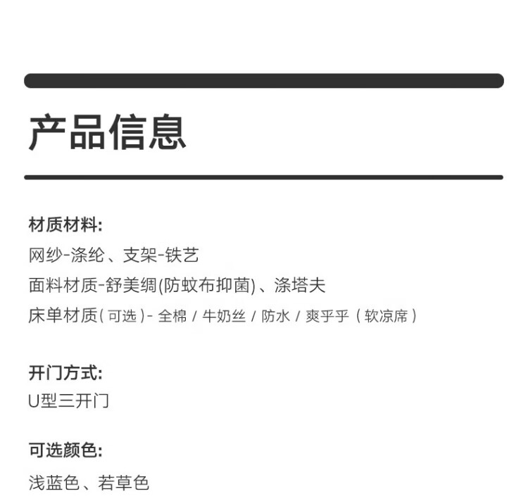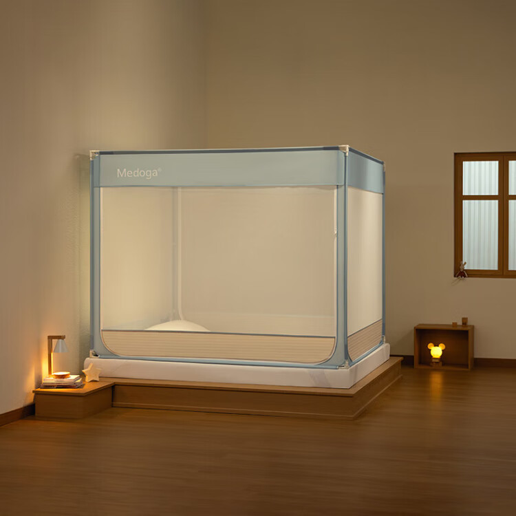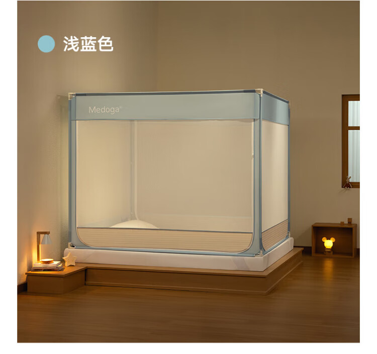 Meiduojia Class A baby anti-fall fence mosquito net frame 1.5x2 household back-bottom three-door light blue antibacterial fabric
