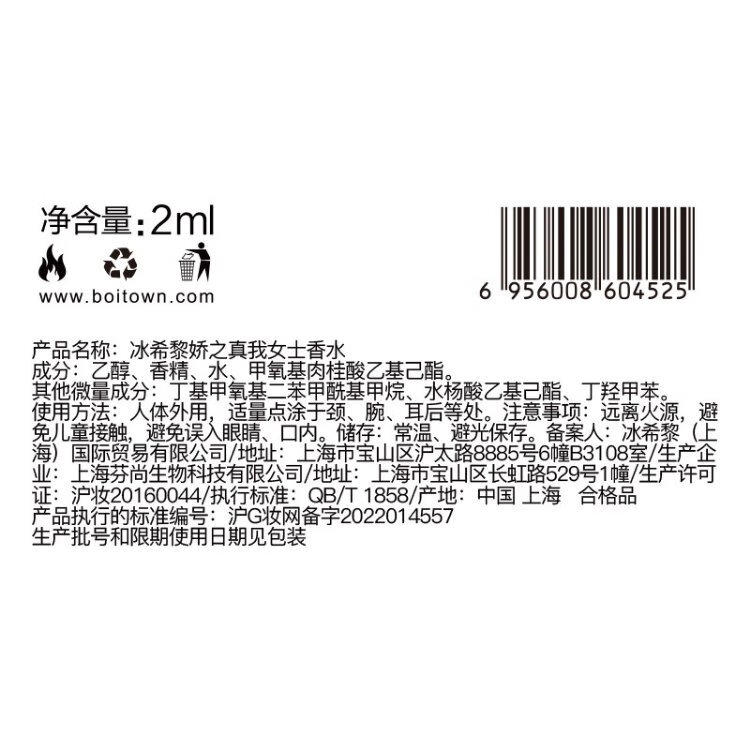 Boitown Jiao's True Eau de Parfum for Women Trial Sample 2ml Fresh Fruity Fragrance