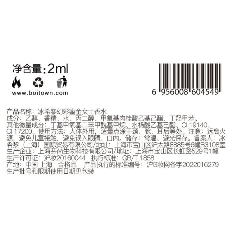 Boitown Illusion Gilt Perfume for Women Classic Sample Sample 2ml Long-lasting Fragrance