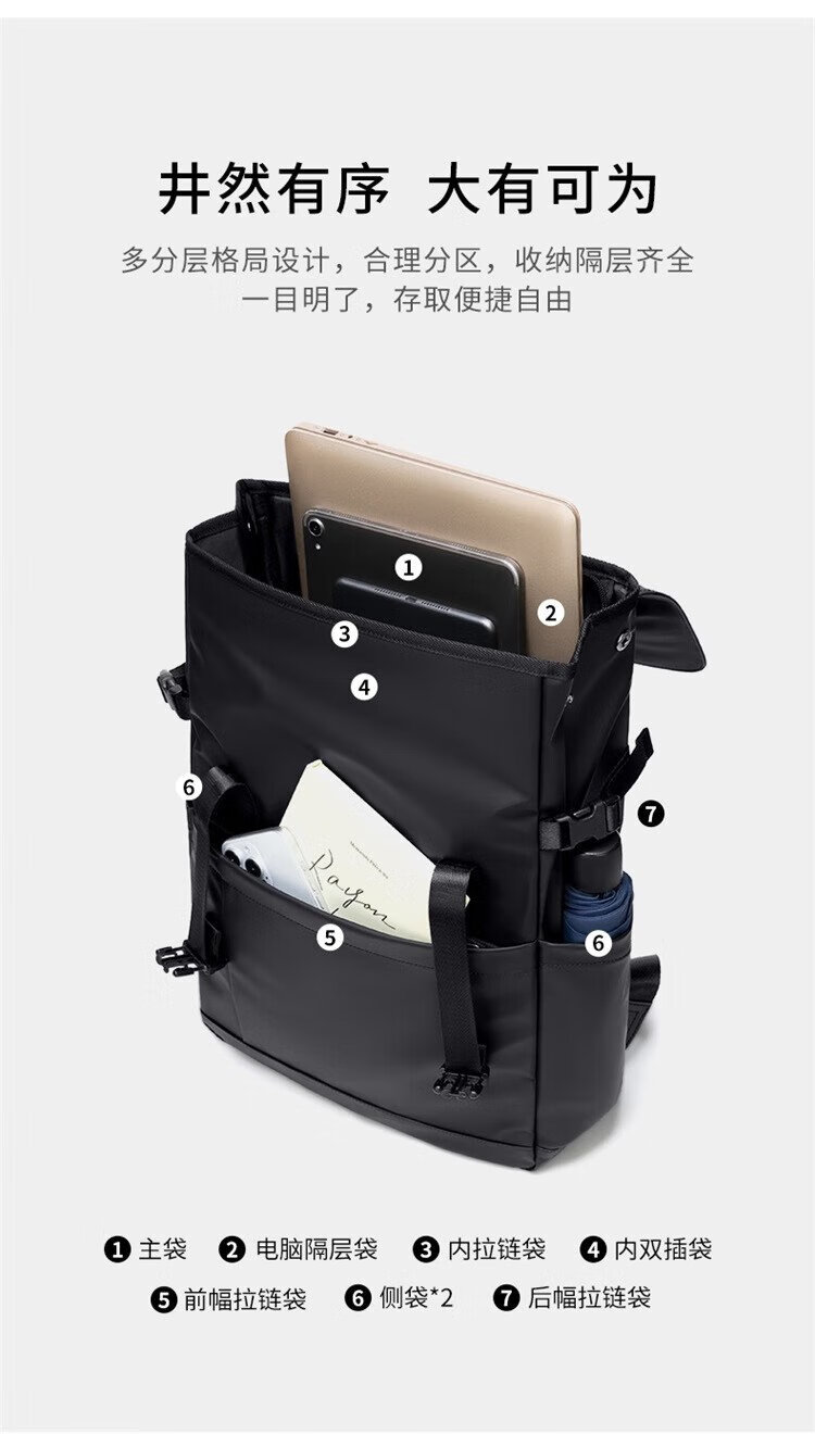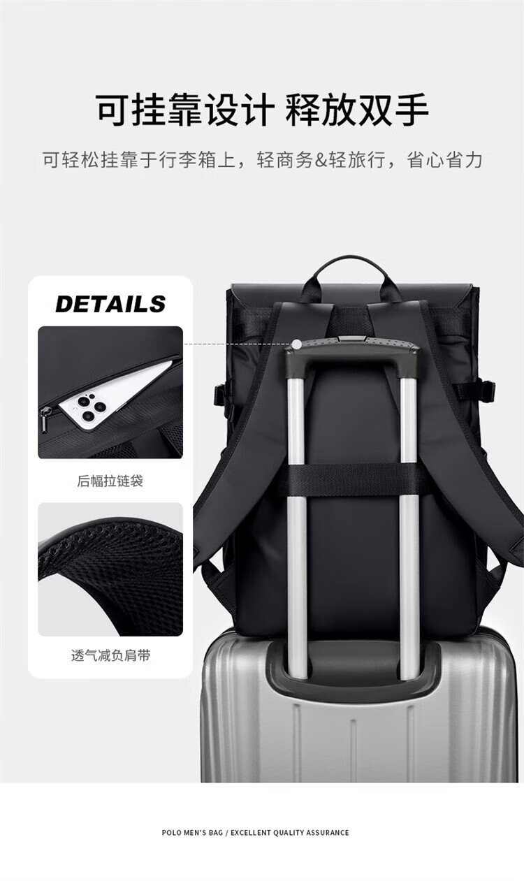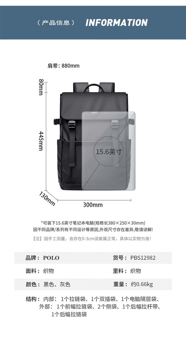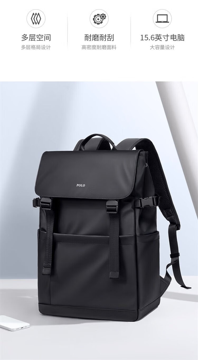 POLO Backpack Men's Travel Backpack Men's Lightweight Flip School Bag 15.6/16 Inch Computer Bag Business Travel Bag
