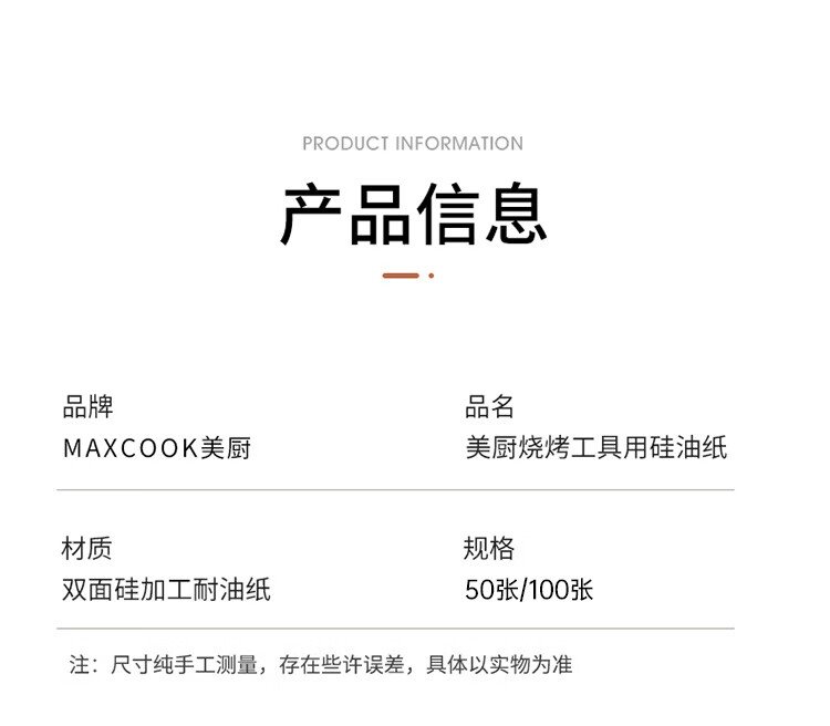 MAXCOOK oven special paper silicone paper barbecue baking paper steamer paper parchment paper 40*30cm 100 sheets MCPJ2226