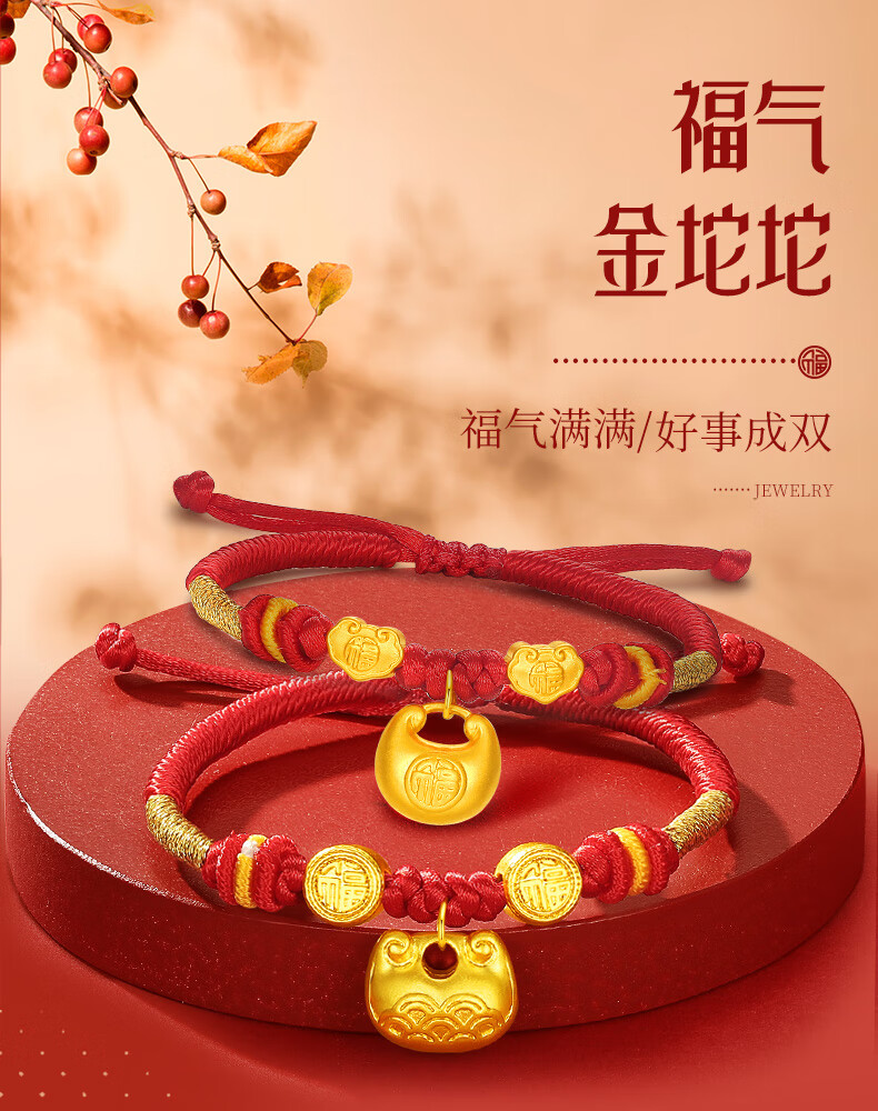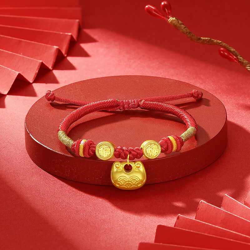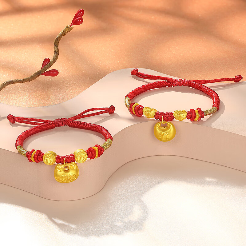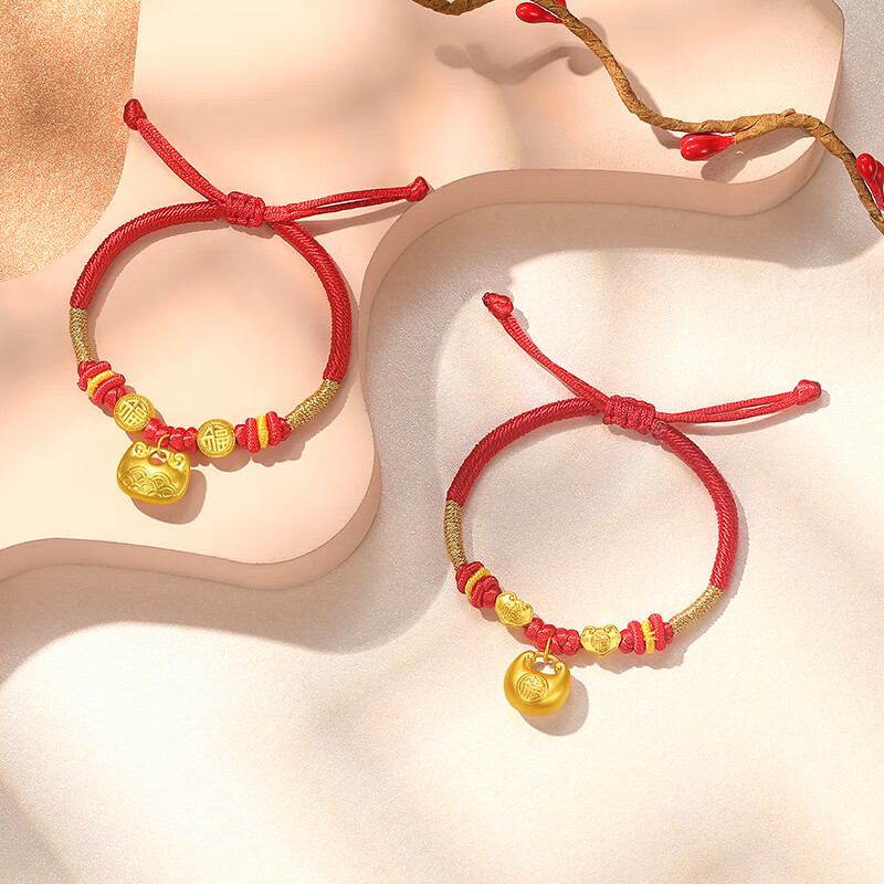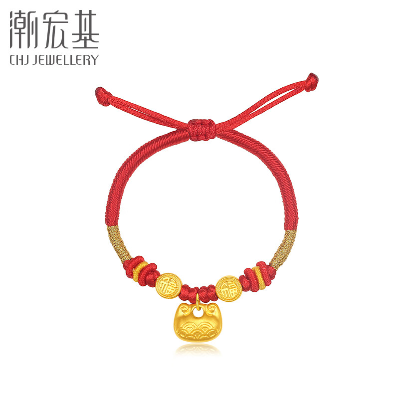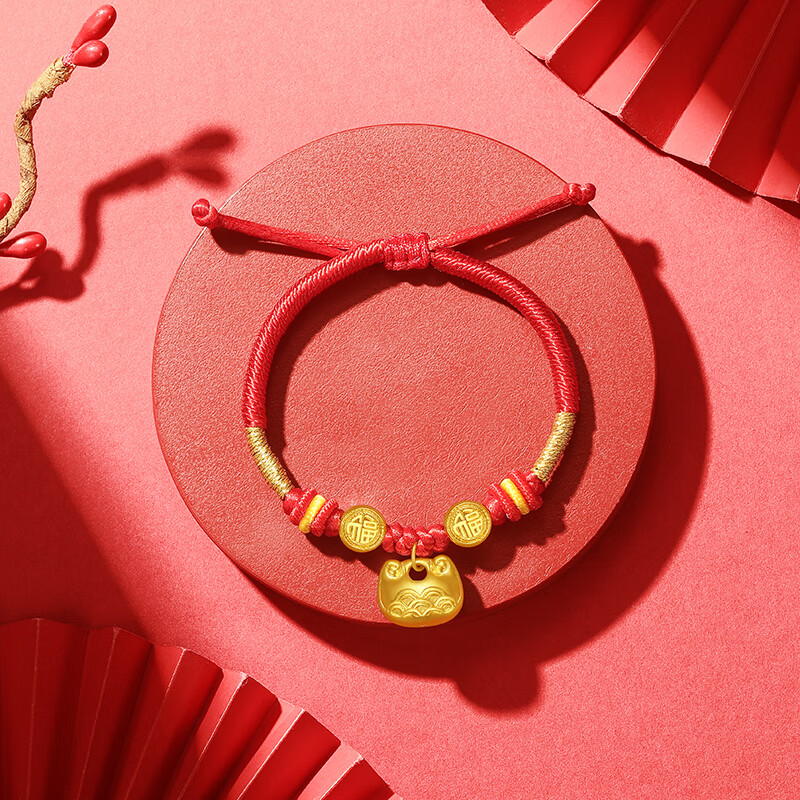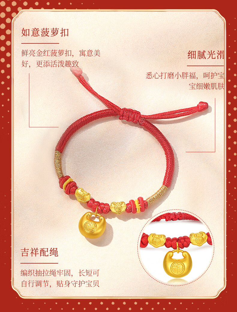 Chao Acer Good Things Happen Pure Gold Bracelet 5D Hard Gold Bracelet Baby's First Birthday Gift Xiangyun Xiaopangfu