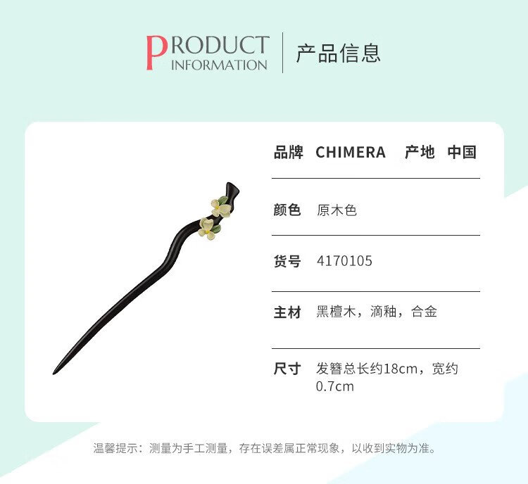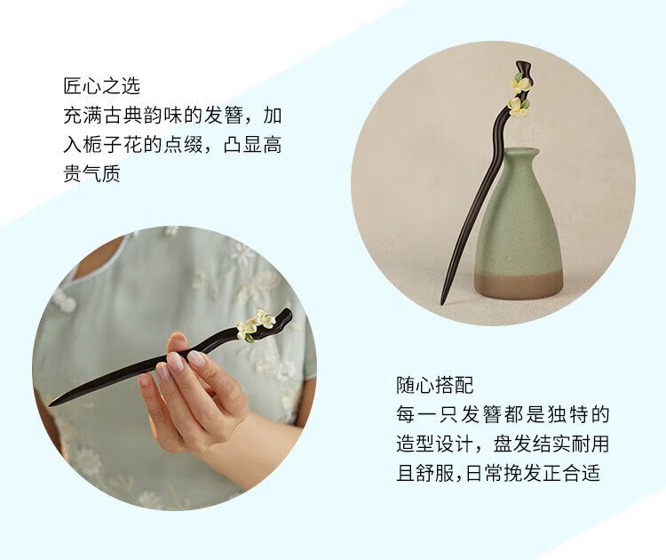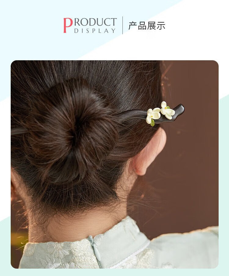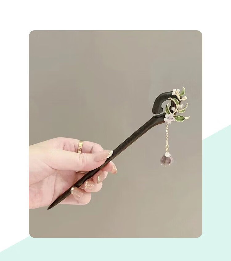 Chimera (CHIMERA) Ebony Gardenia Hairpin Ancient Style Costume Hairpin Shaking Cheongsam Hanfu Headwear Girl Birthday Gift