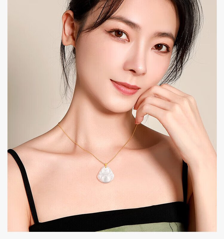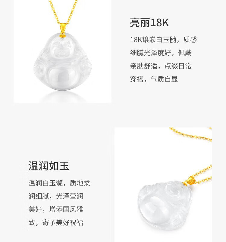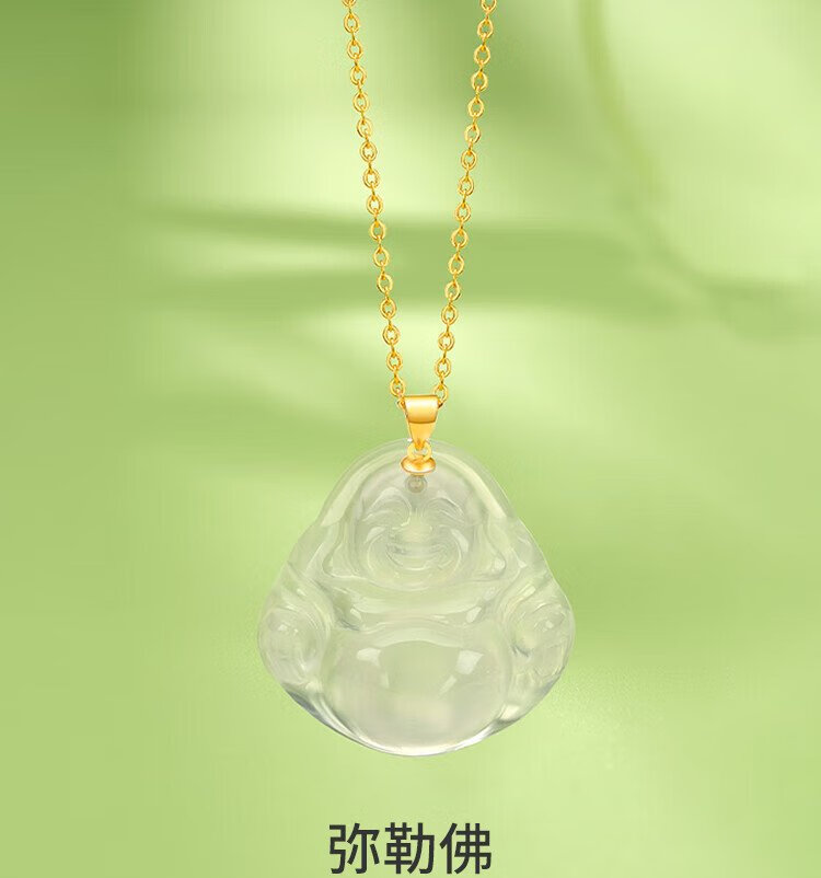 Mengjinyuan 18K gold inlaid jade pendant chalcedony Maitreya Buddha pendant for men and women birthday gift
