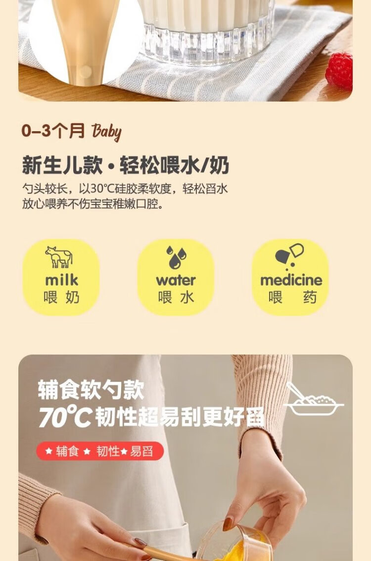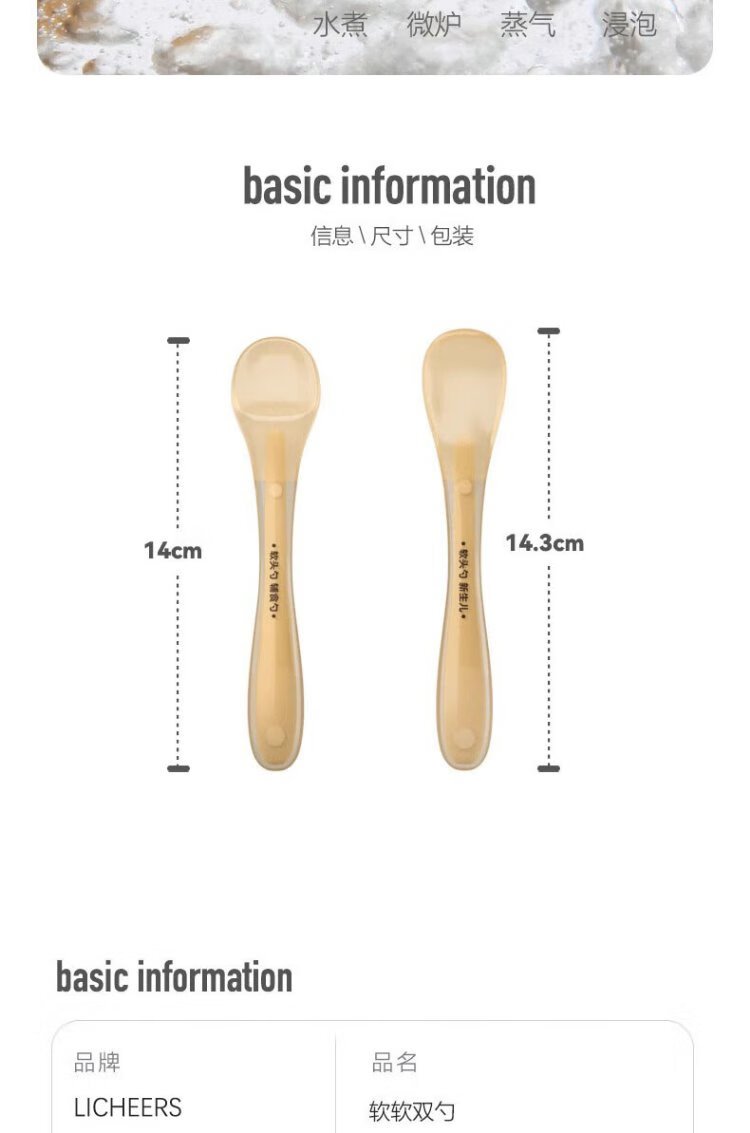 Licheers silicone spoon, baby food spoon, newborn baby learning to eat, feed water, feeding spoon, children's soft-headed spoon tableware
