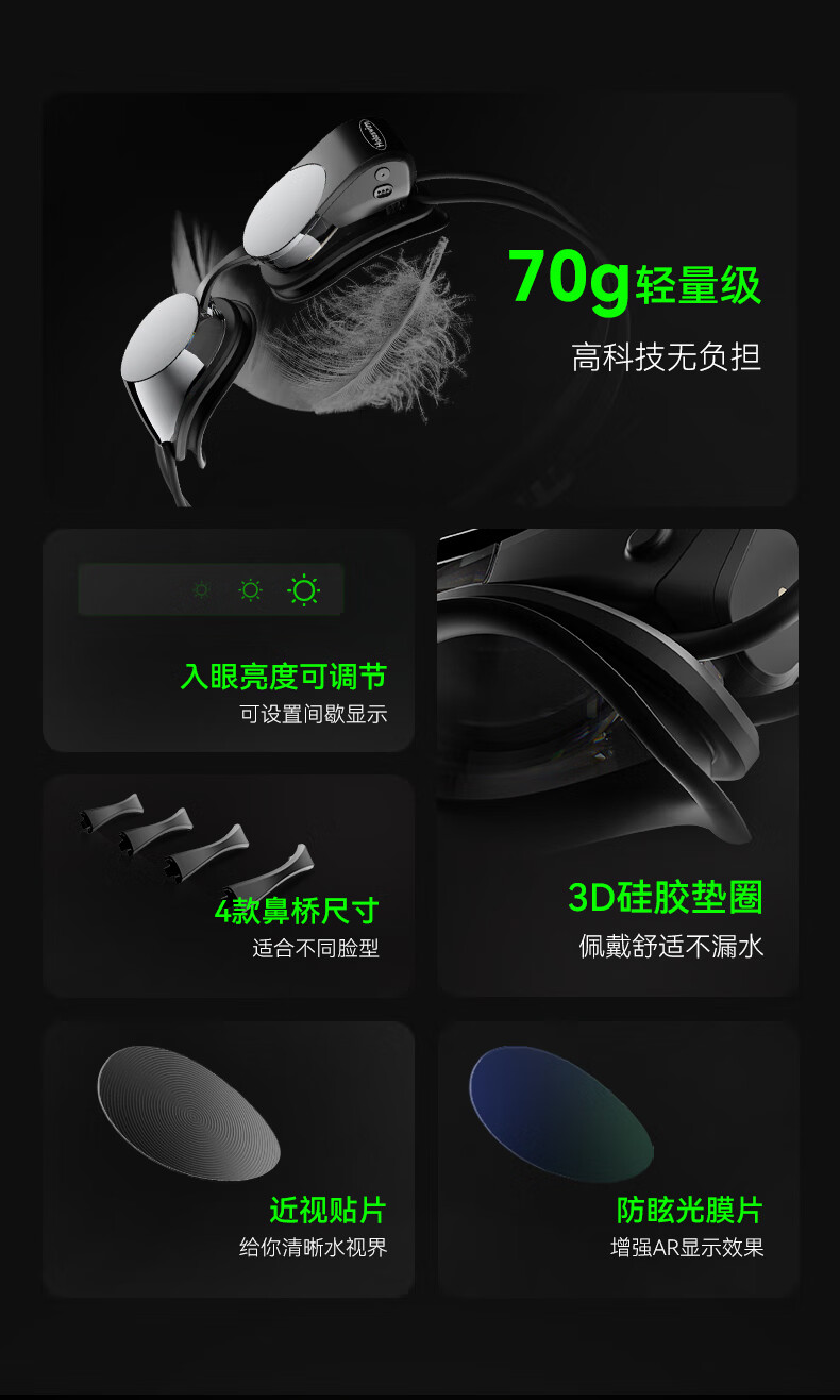 Light particle AR smart swimming goggles myopia high definition anti-fog waterproof professional swimming goggles auxiliary equipment adult Holoswim2s