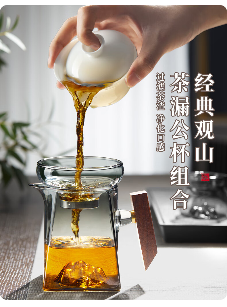 Eight Thousand Lines Justice Cup three-piece set glass tea leakage with filter tea divider tea set accessories special for high temperature resistant small green mandarin orange