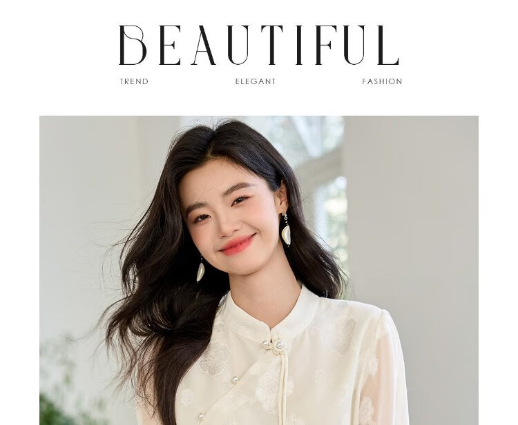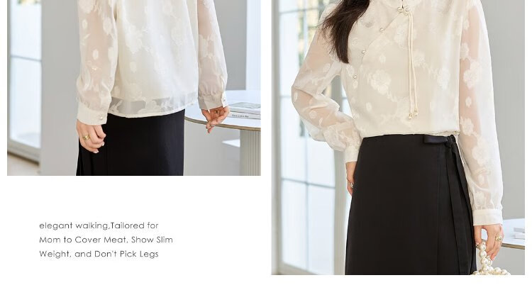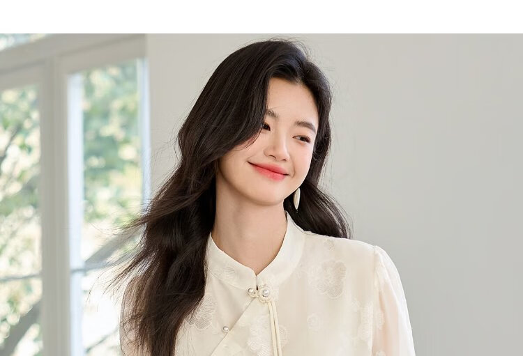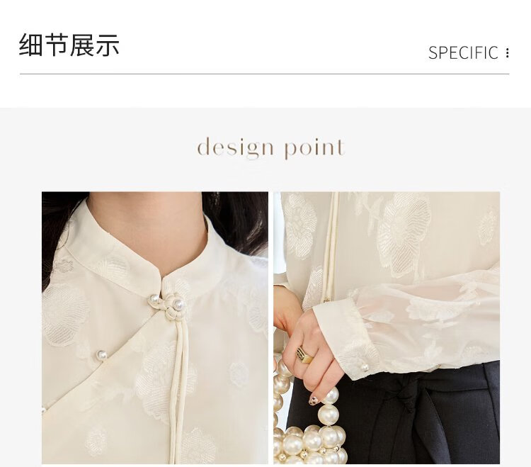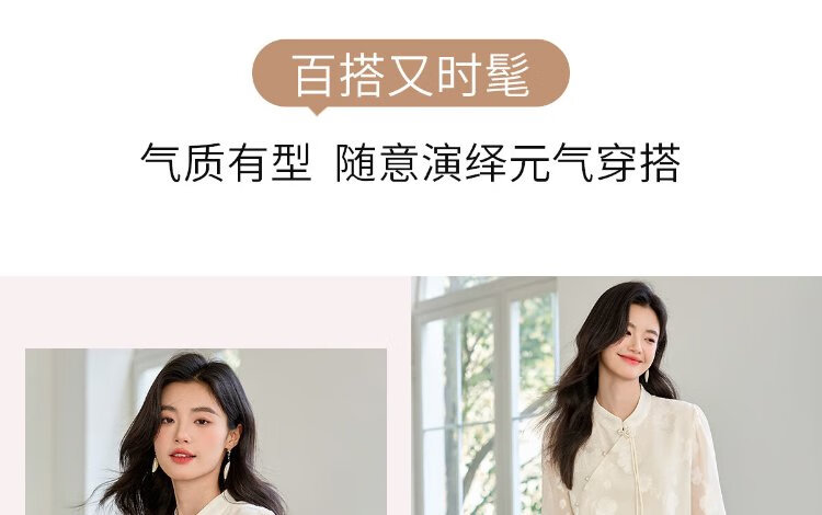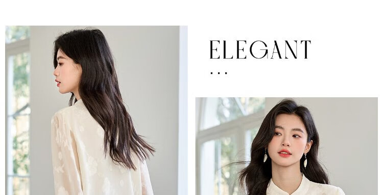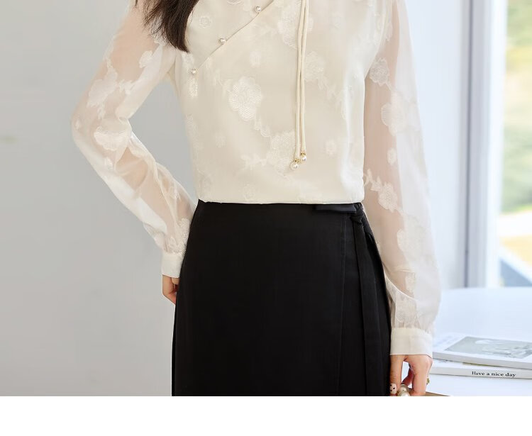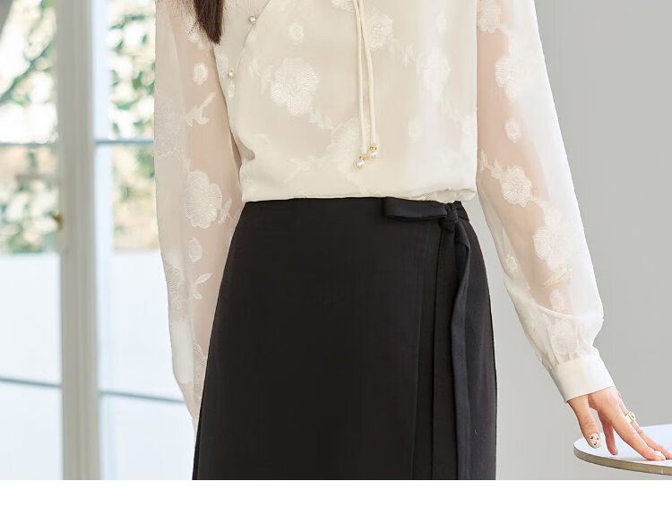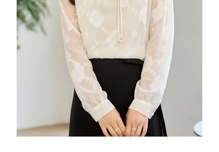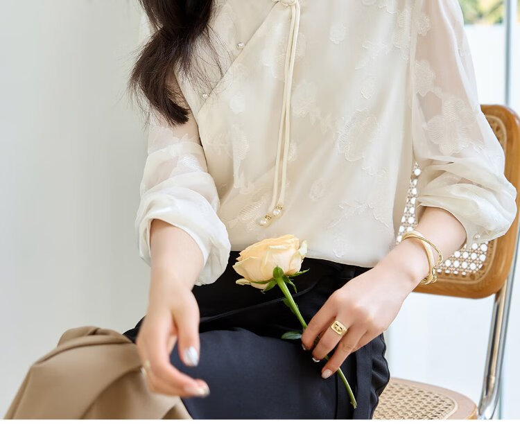She enjoys long-sleeved shirt women's oriental simple luxury style high-end jacquard fabric shirt chiffon shirt top T143C2401