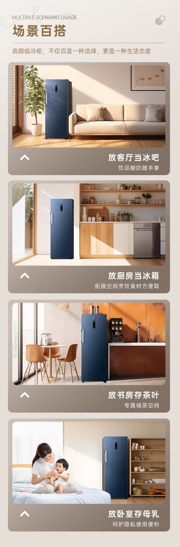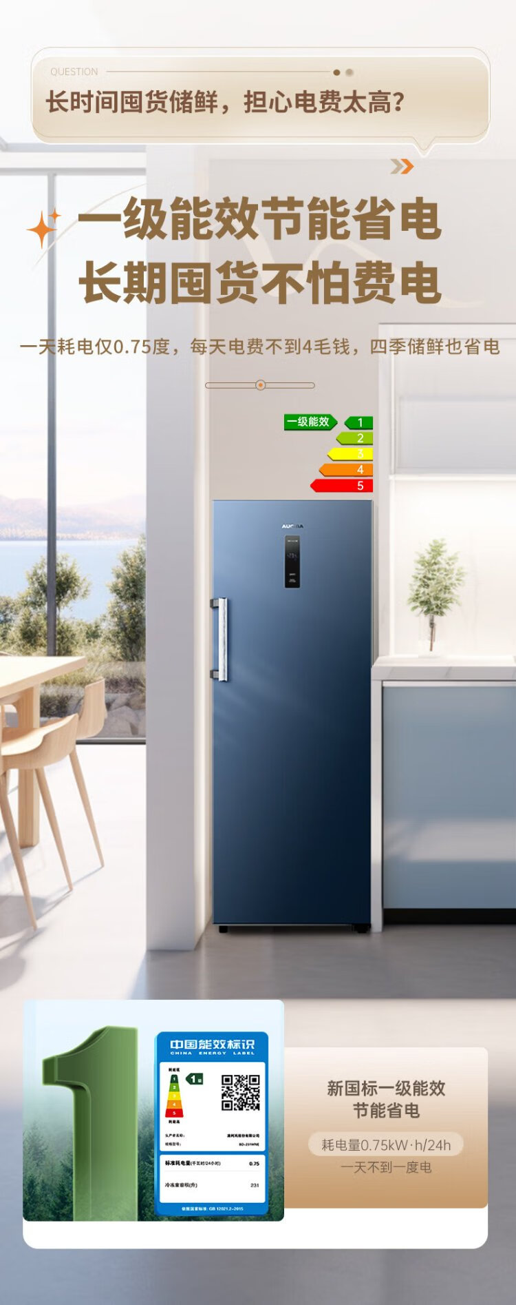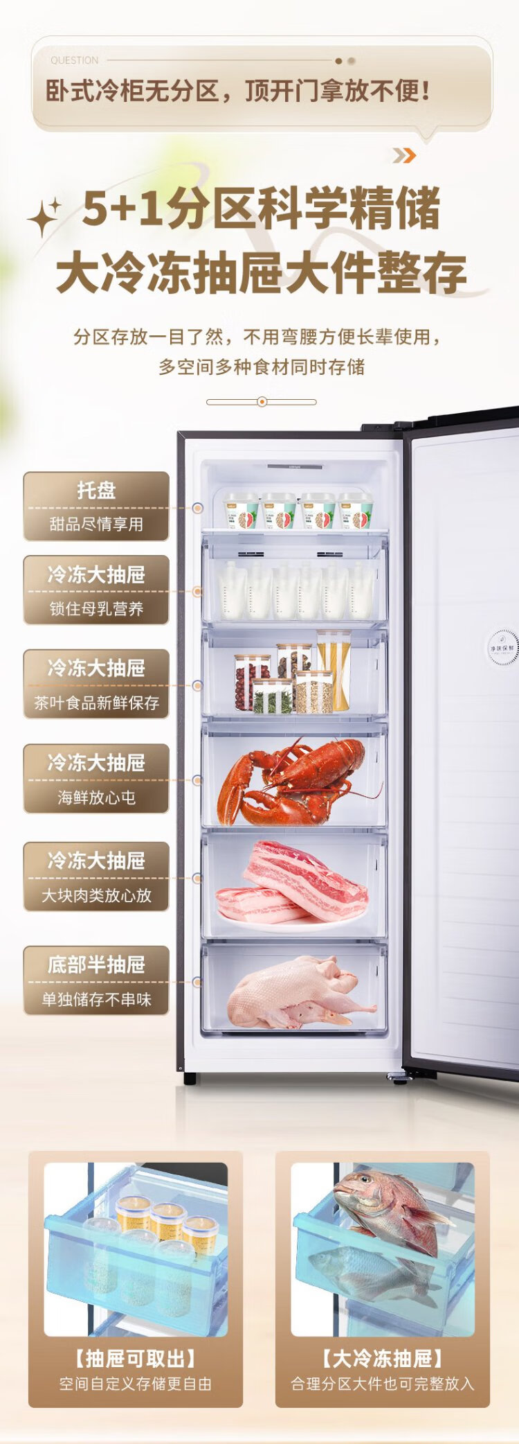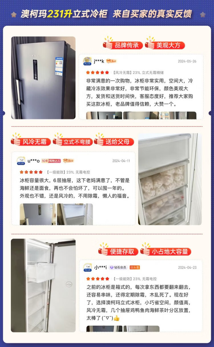 澳柯玛(AUCMA)231升立式冰柜冷柜风冷无霜一级能效家用母乳冷藏全冷冻抽屉式单开门小冰箱BD-231WNE 国家补贴