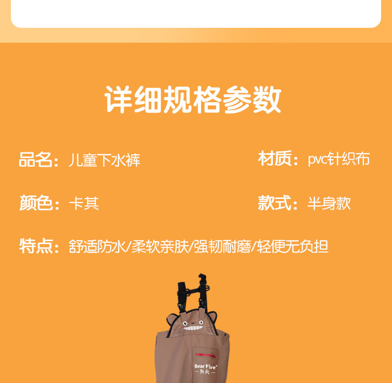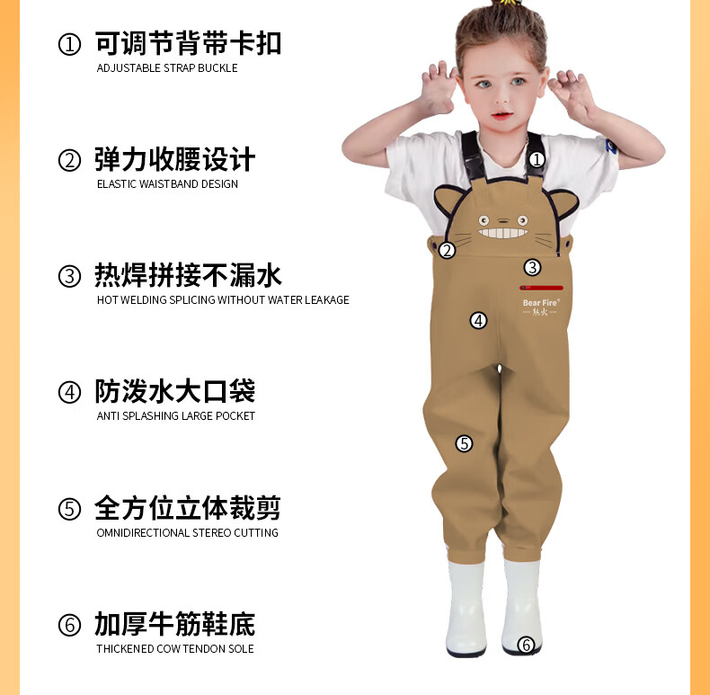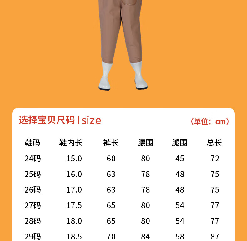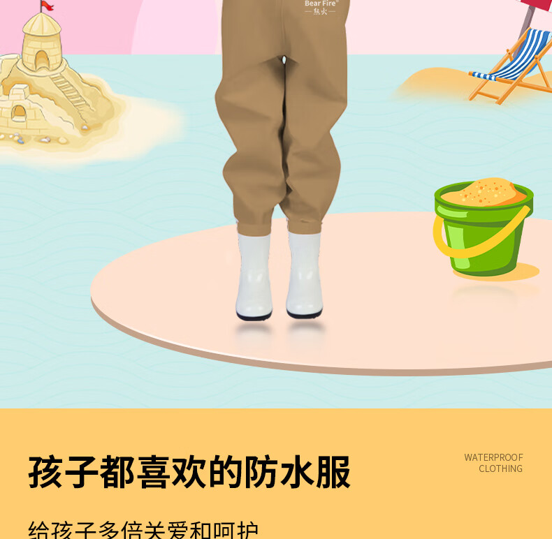 Xionghuo children's waders size 26 outdoor wading pants with pocket straps waterproof one-piece rain pants wading suit for sea wear