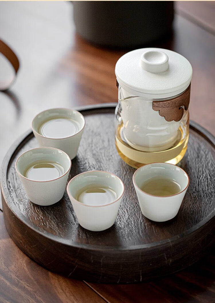 Qixuanyuan mutton fat jade porcelain Kung Fu tea set home high-end office reception guest ink Jiangshan tea cup cover bowl complete set