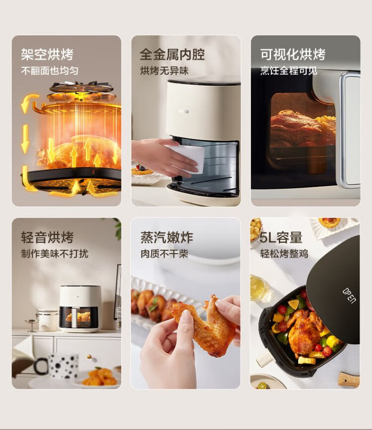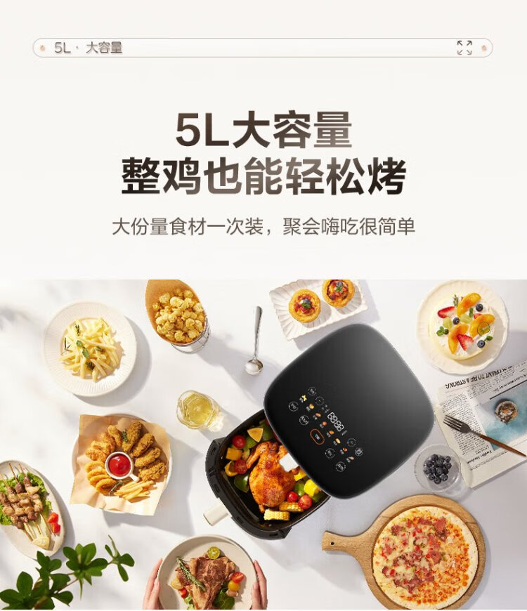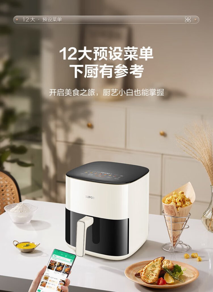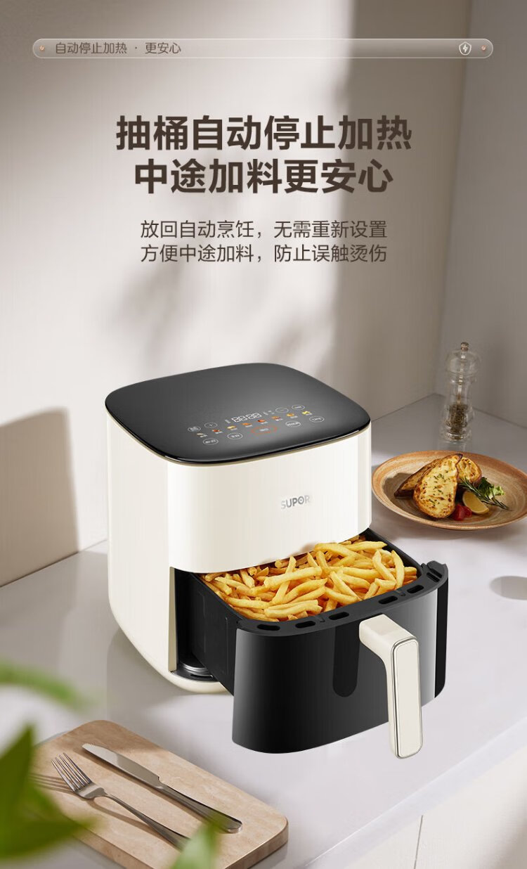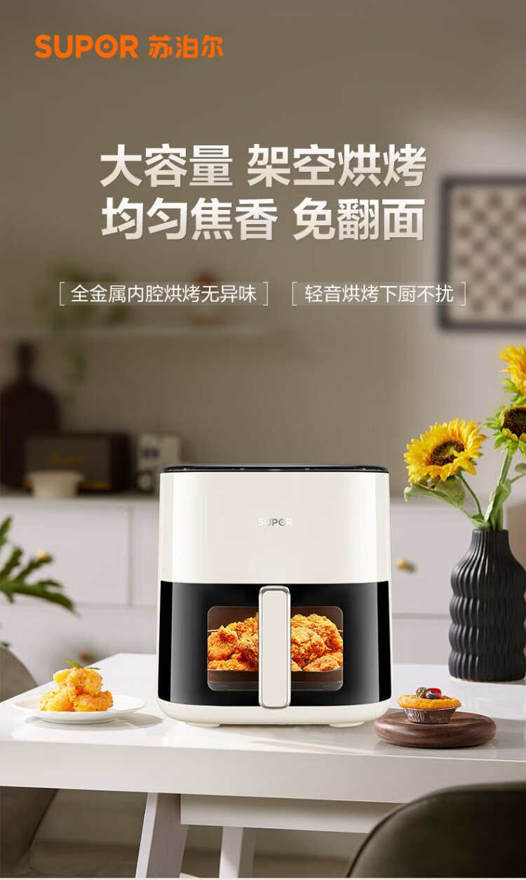 SUPOR air fryer does not require turning, fully automatic for home use, visible 5L large capacity, steam tender, fried, grilled and fried all in one, no turning required fryer KD50D812A