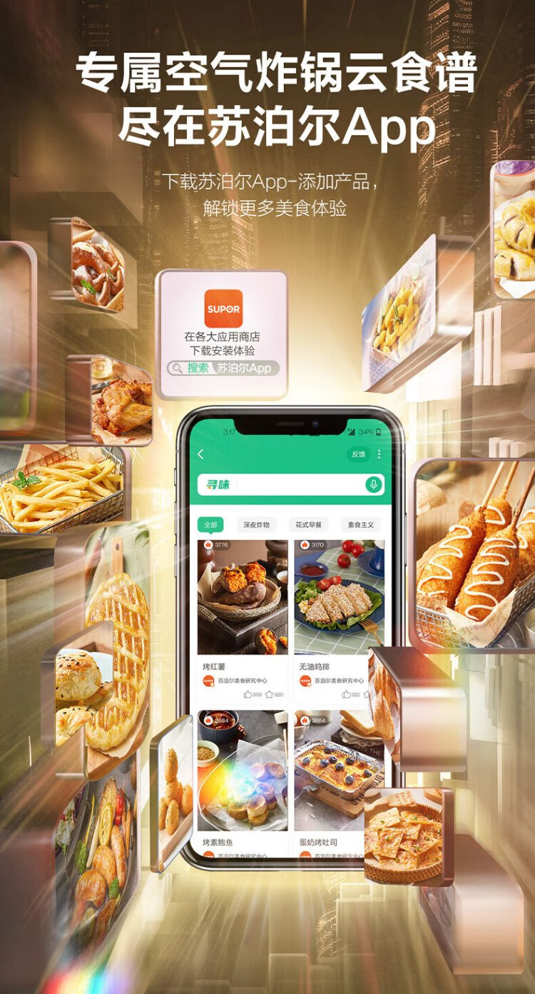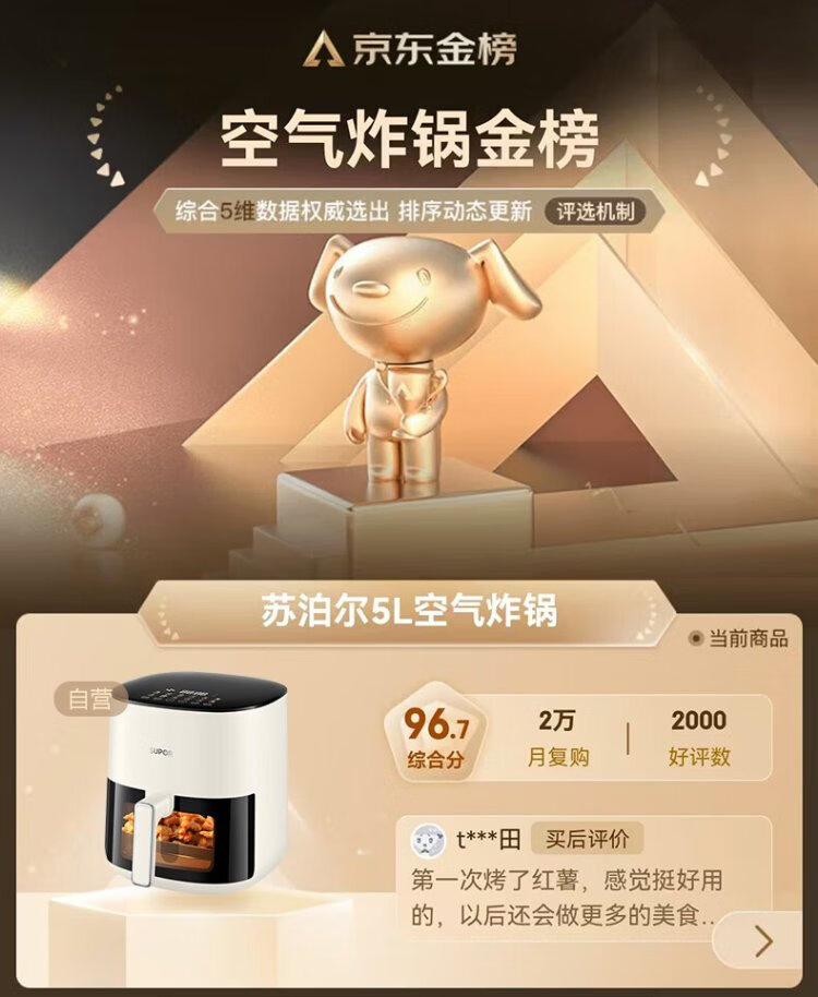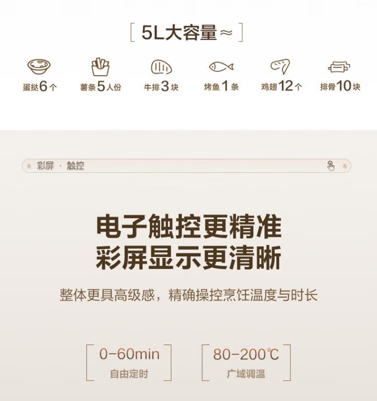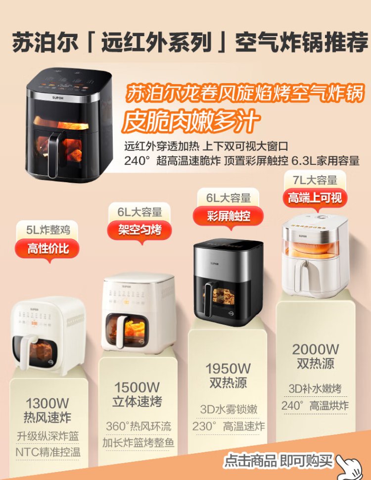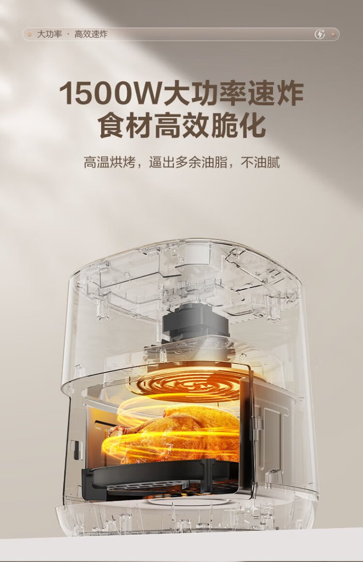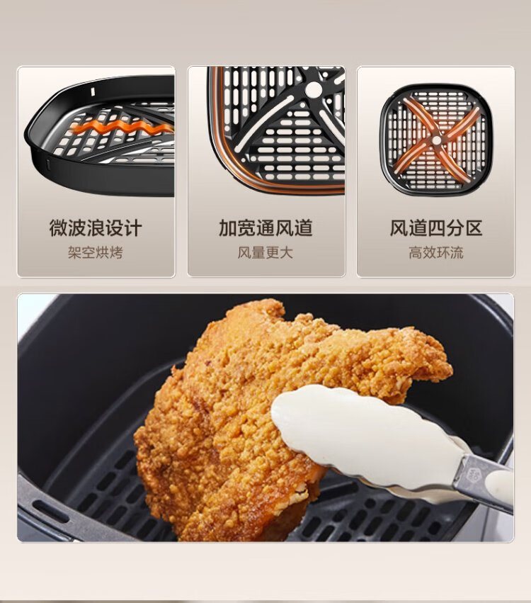SUPOR air fryer does not require turning, fully automatic for home use, visible 5L large capacity, steam tender, fried, grilled and fried all in one, no turning required fryer KD50D812A