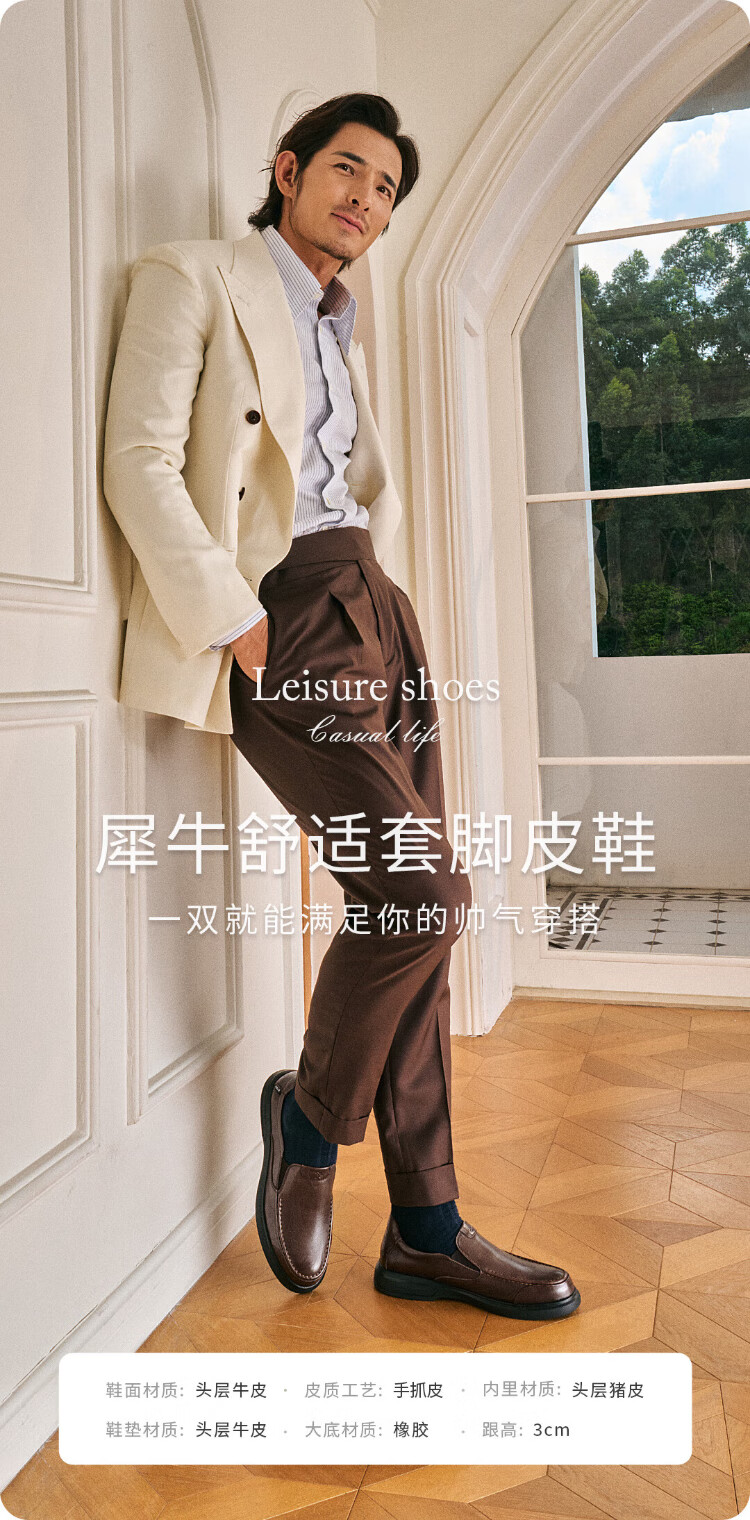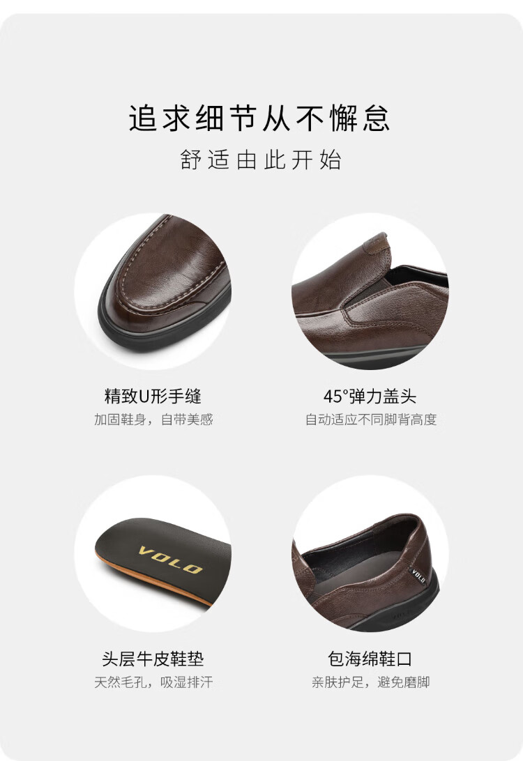 VOLO Rhino Men's Shoes Slip-on Shoes Men's Business Casual Leather Shoes Black 40