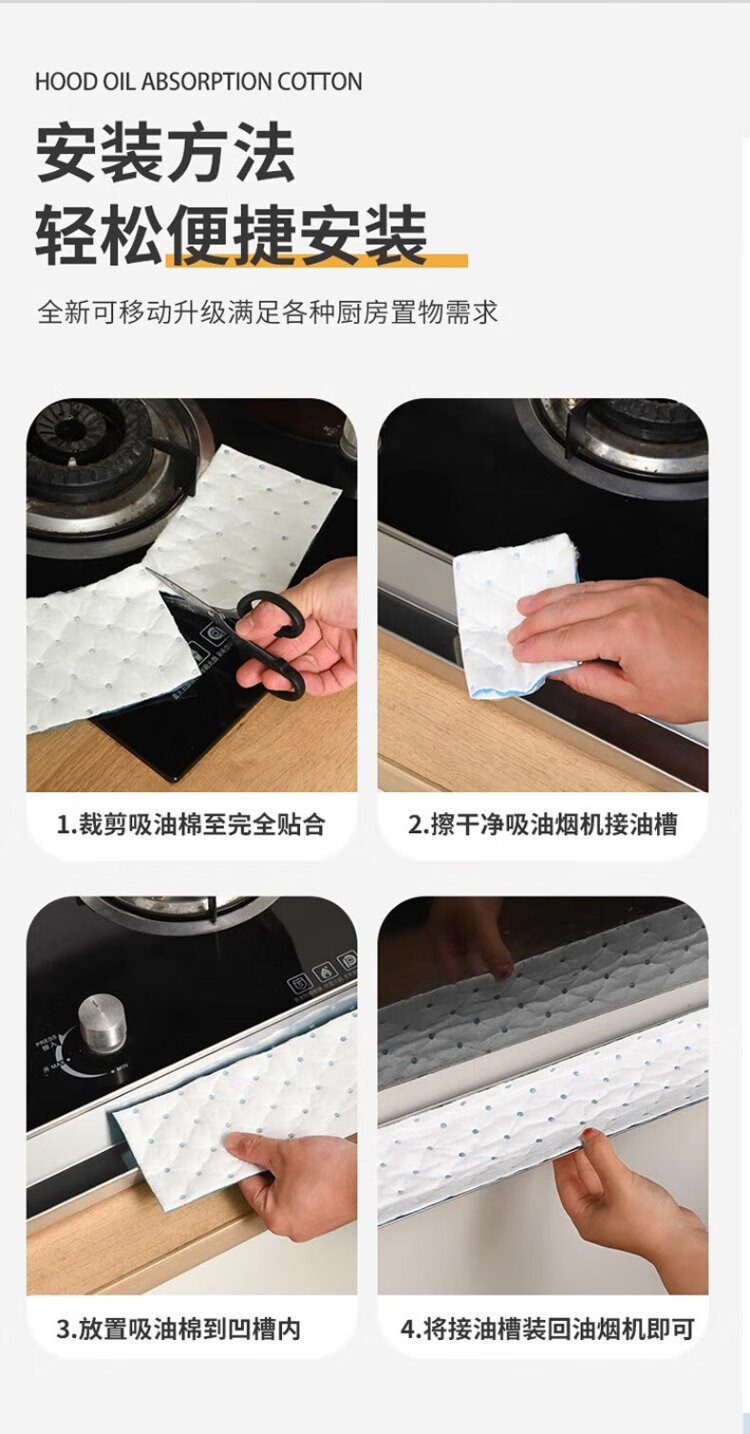 Baijiahaoshi range hood oil-absorbing tampon pad 90cm*10cm 30 pieces kitchen thickened oil-proof sticker extraction pad oil tank