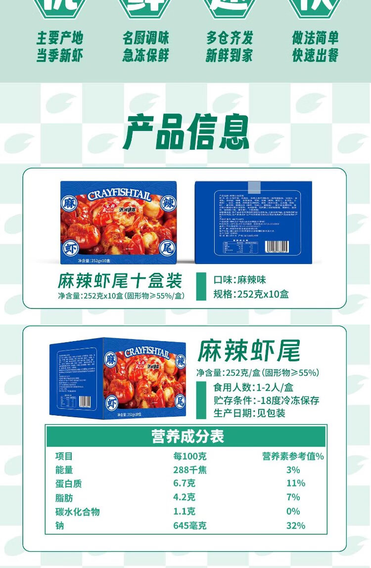 Honghu Temptation Anjing Spicy Crayfish Tail 10 boxes 252g Solid 120g About 45 pieces Heat and eat