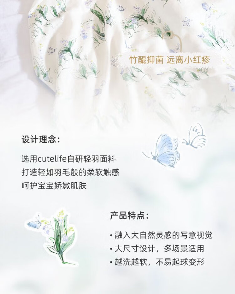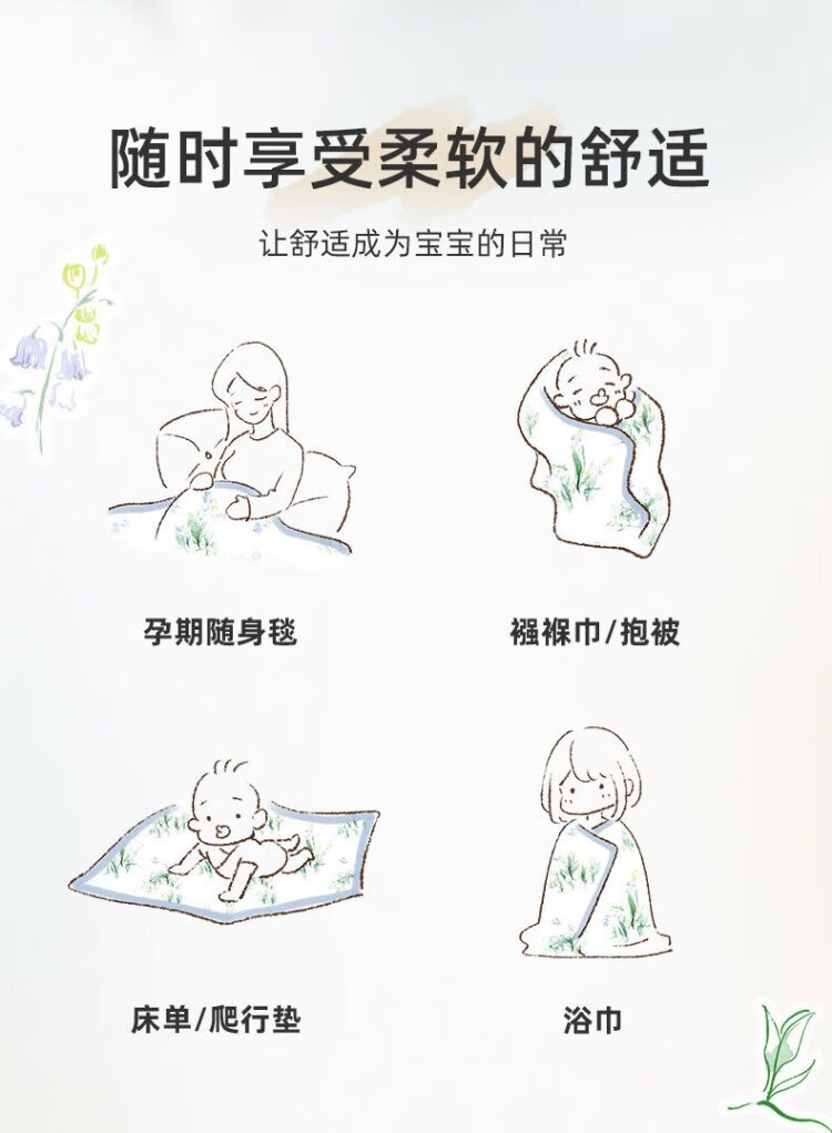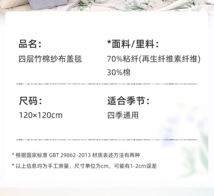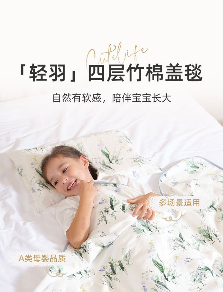 Cutelife four-layer children's bamboo cotton gauze blanket newborn swaddling blanket four seasons blanket Luying accompanying 120*120 cm
