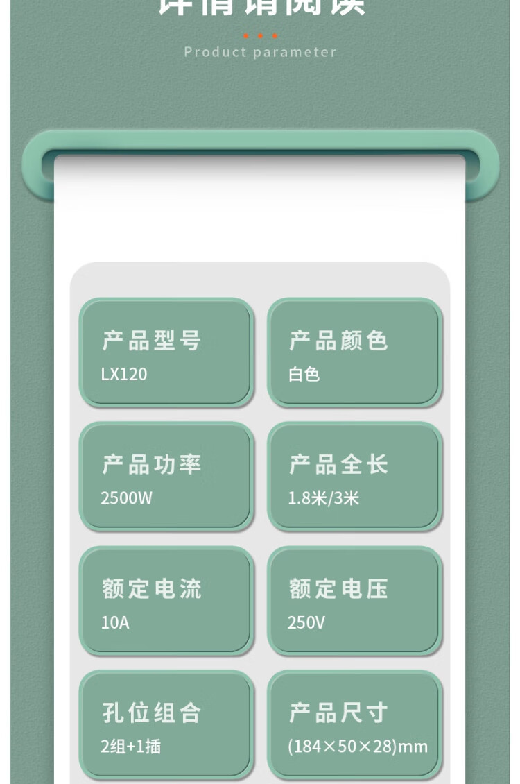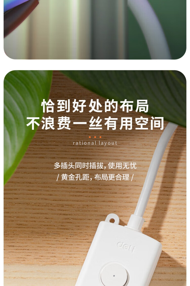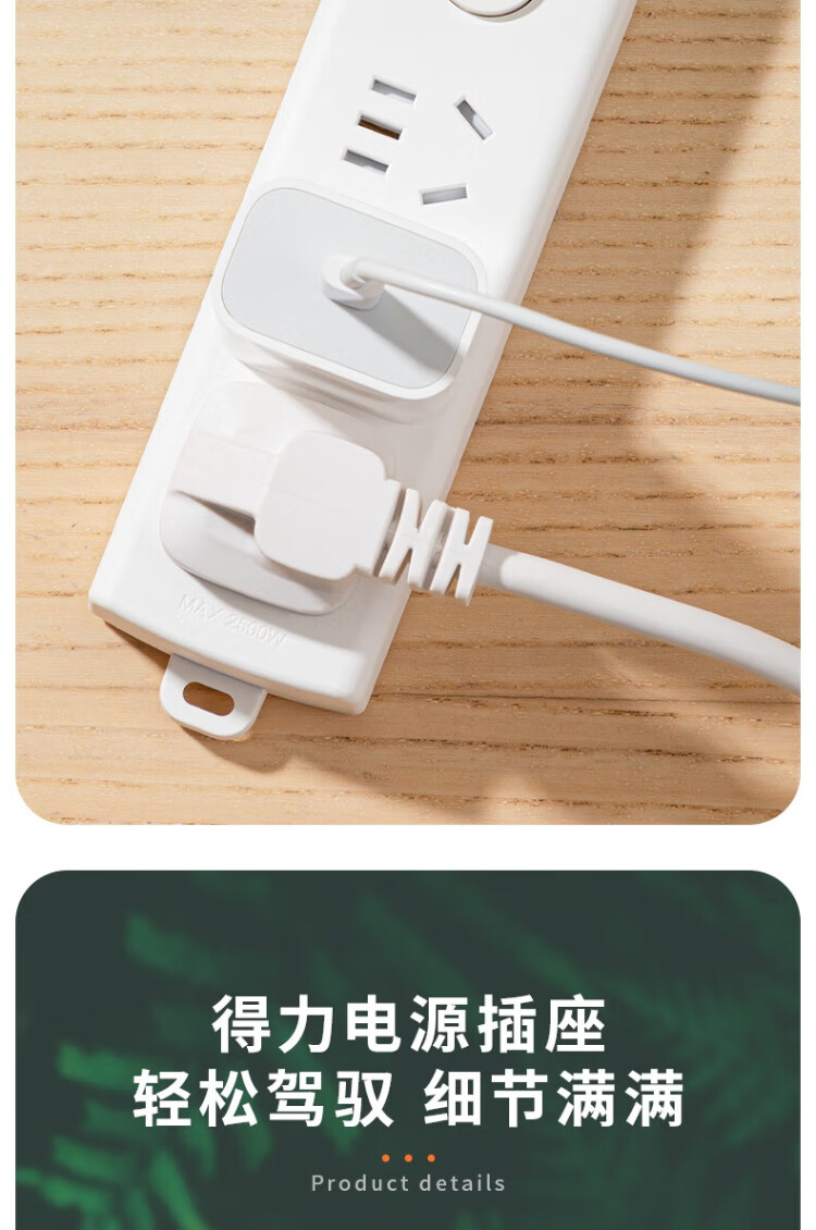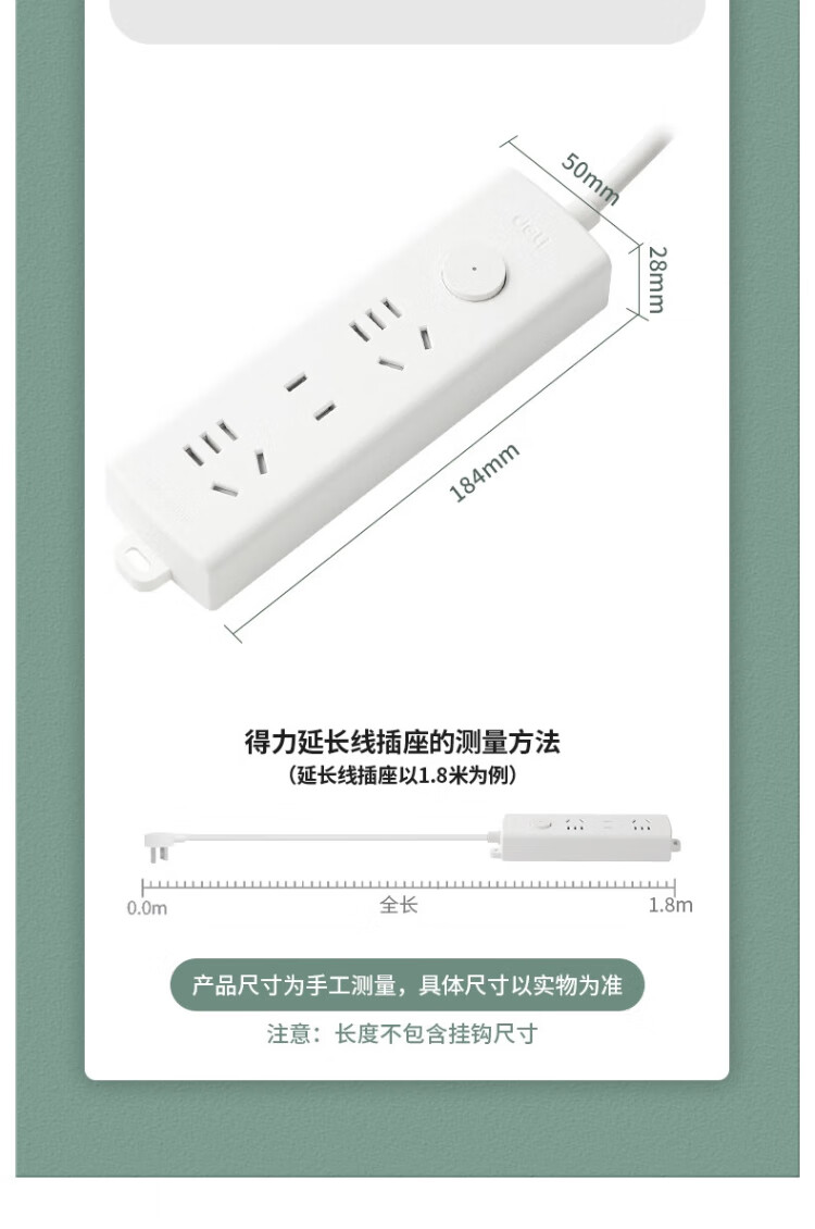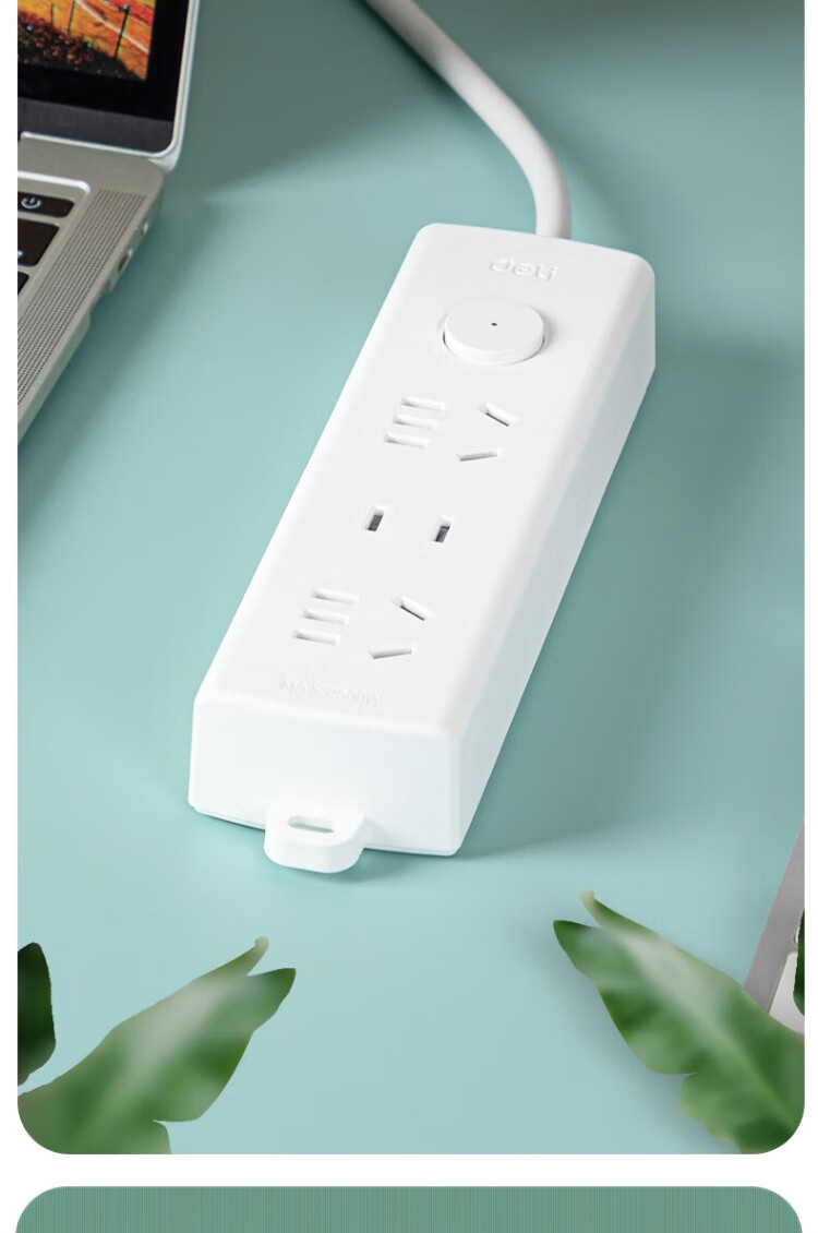 Deli pearl white series national standard safety socket/socket strip/strip board/wiring board/strip extension cord master control switch protection door 3 positions 1.8 meters LX120
