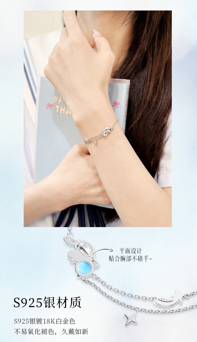 Trendy painted jade cinnamon dog star silver bracelet girls birthday gift girls bracelet Sanrio gift girlfriend 6096