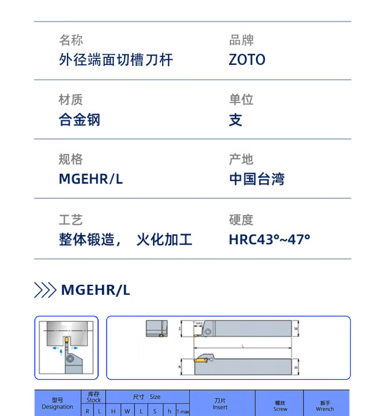ZOTO outer diameter end face grooving tool bar CNC lathe cutting knife outer circle flat cutting tool groove tool bar turning tool MGEHR1616-2.0