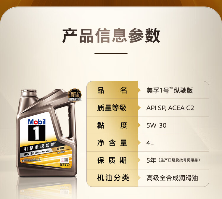 Mobil Mobil 1 Zongchi Edition Exclusive Performance Fully Synthetic Motor Oil 5W-30 C2 SP Grade 4L