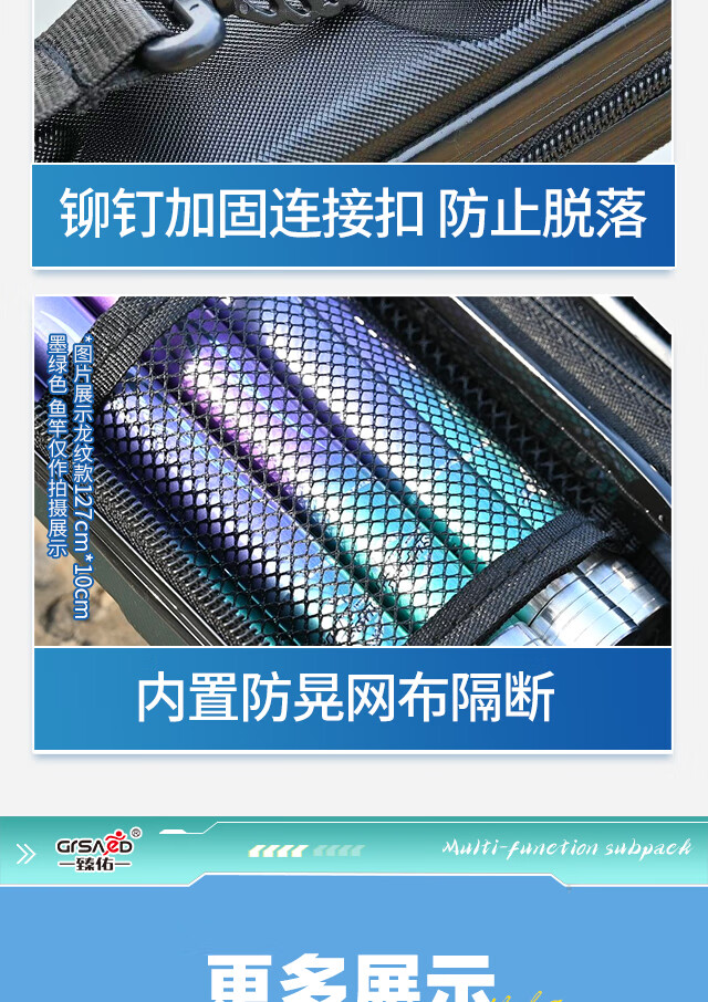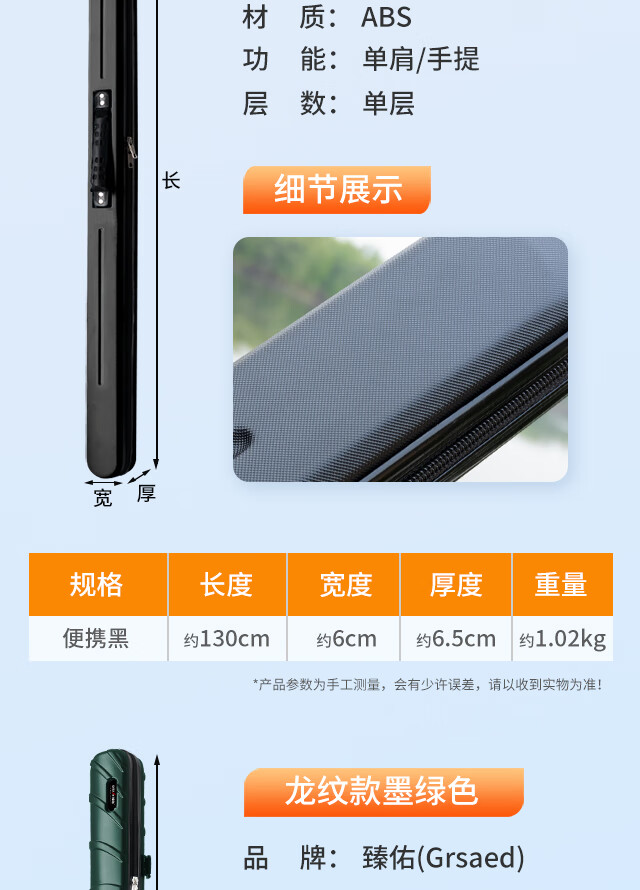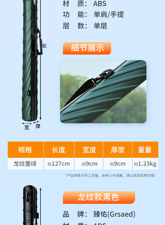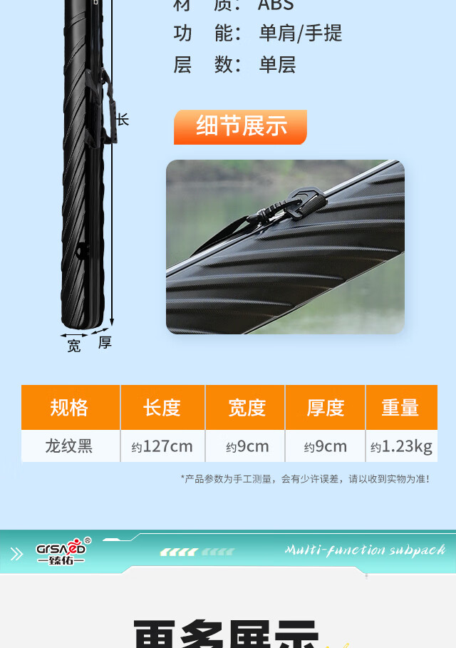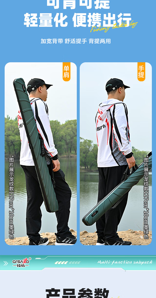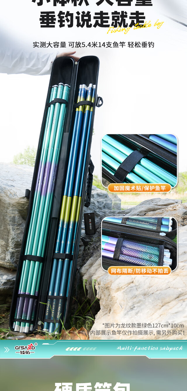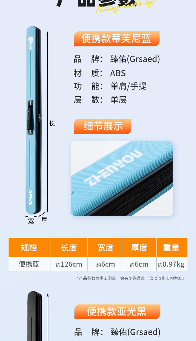 Zhenyou (Grsaed) hard shell fishing rod bag fishing bag multi-functional mini rod bag portable fishing gear bag waterproof blue 125*6cm