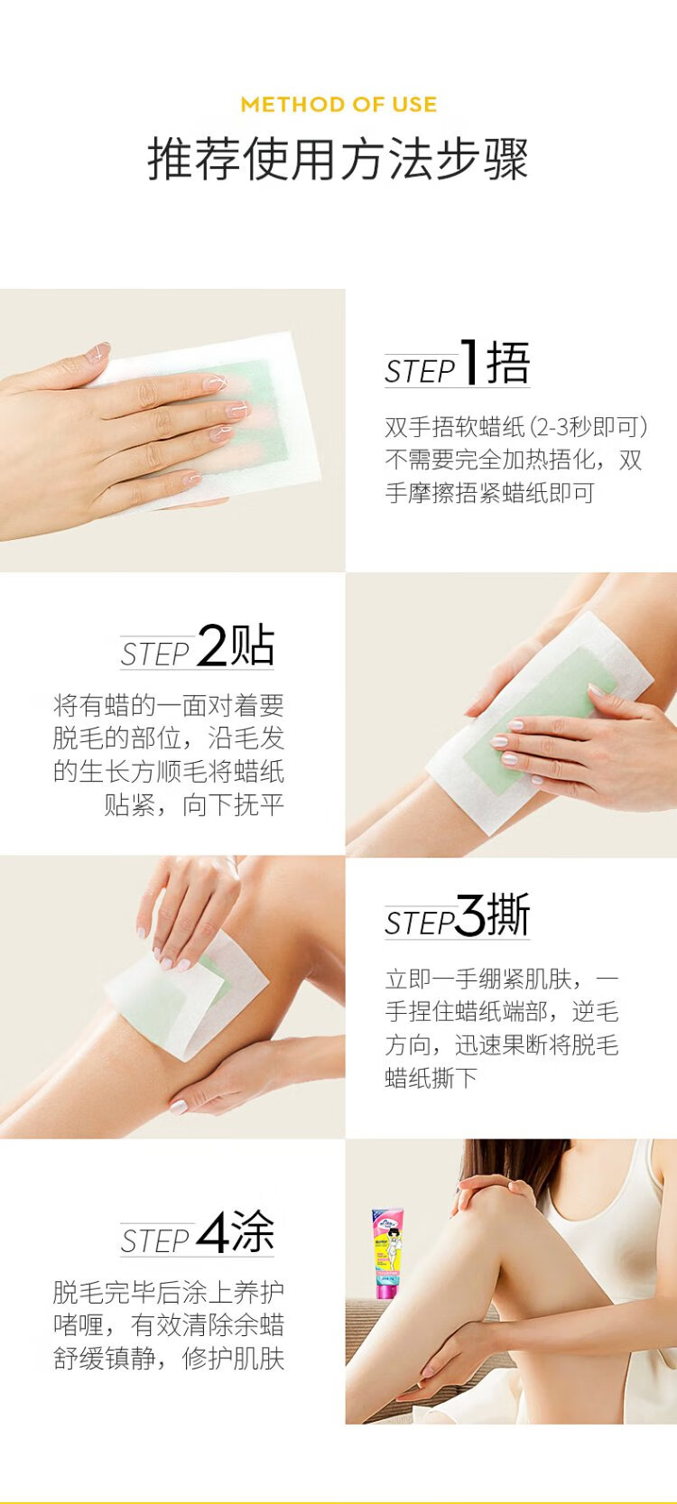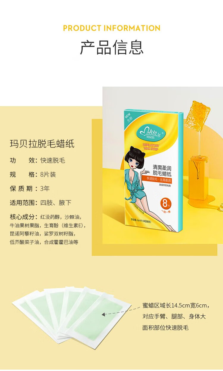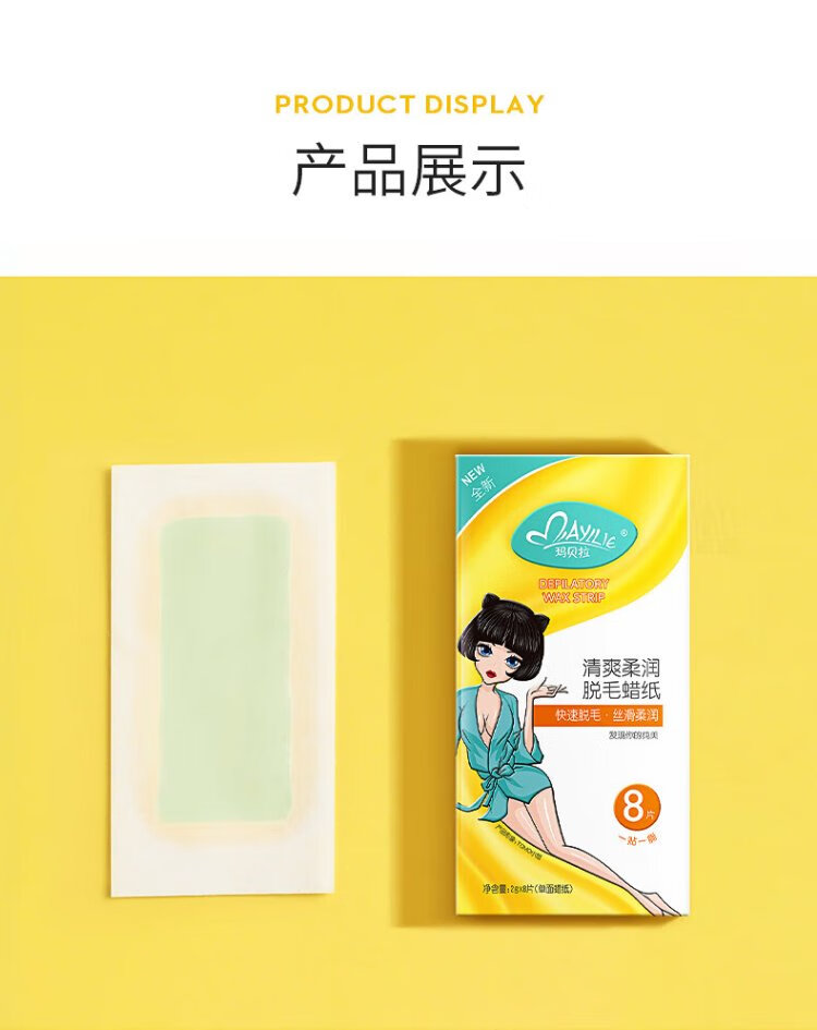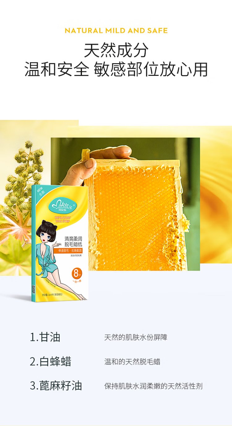 Marbella Hair Removal Wax Paper 8 Pieces Beeswax Hair Removal for Delicate Skin Suitable for Men and Women Universal Leg and Limb Hair Removal