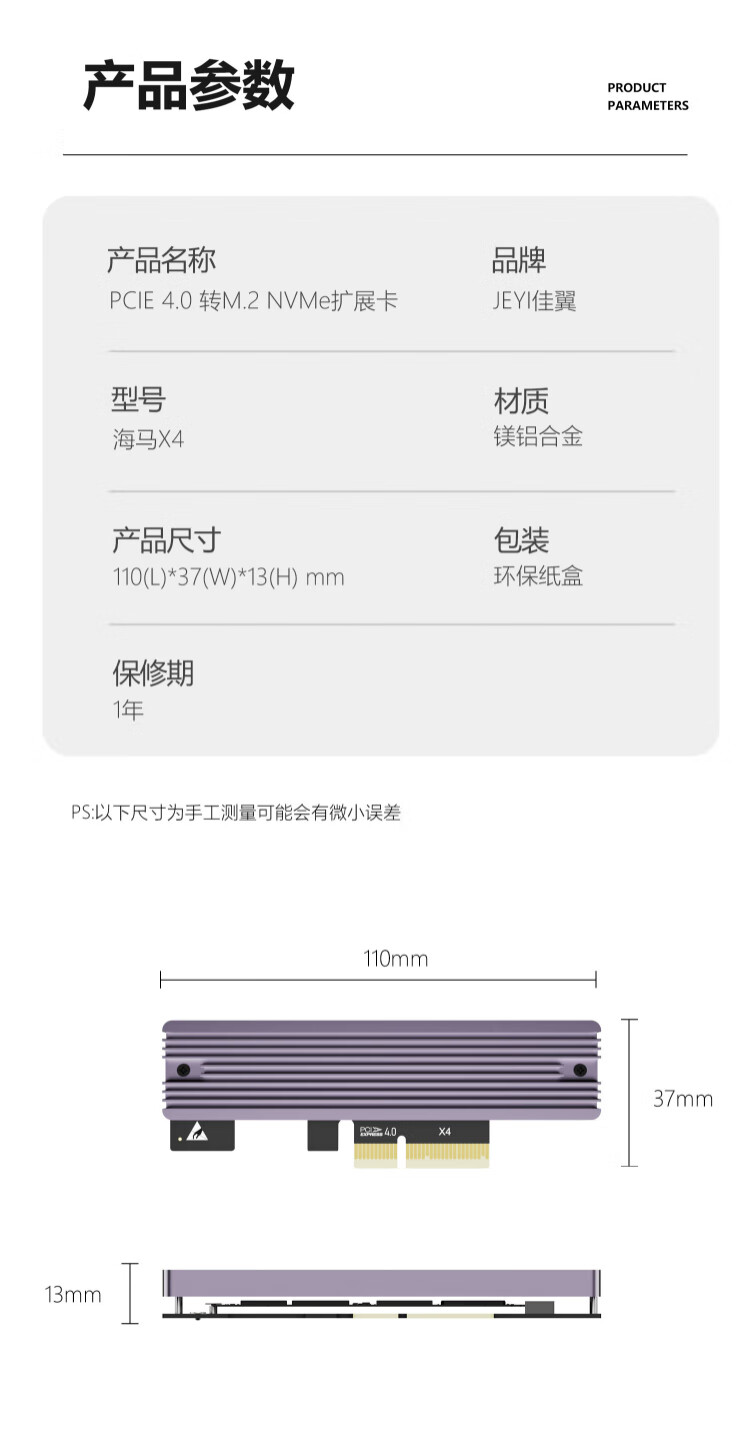 JEYI PCIe to M.2 adapter card NVMe expansion card 64Gbps X4/X8/X16 compatible PCIe 4.0/3.0/2.0 SSD solid state drive expansion card