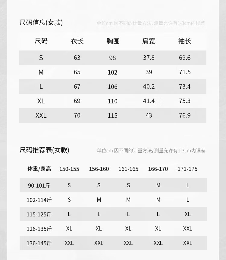 China (cm) 160-165/84-86 165-170 / 88-90 167-172 / 92-96 168-173 / 98-102 170-176 / 106-110