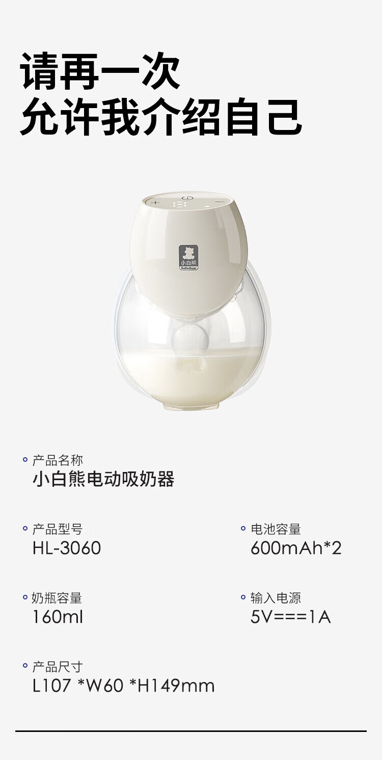 Little White Bear SnowBear Breast Pump Hands-free Electric All-in-one Wearable Fully Automatic Silent Single-sided Portable Breast Pump 3060
