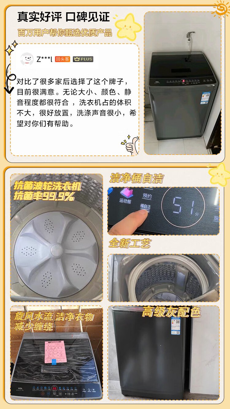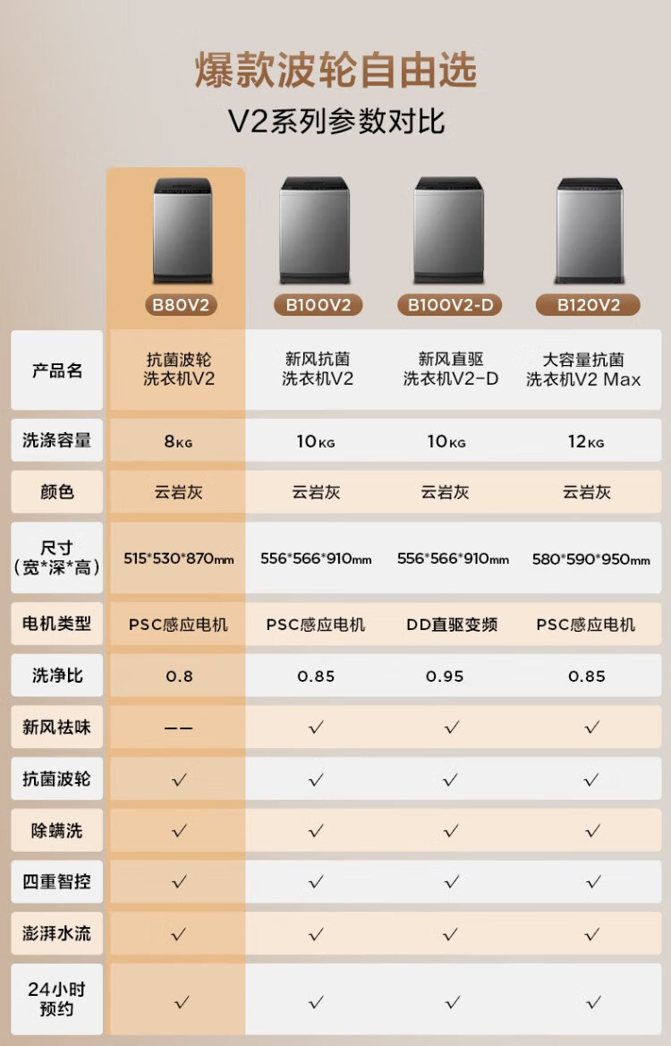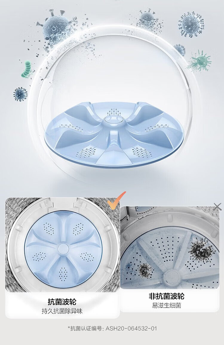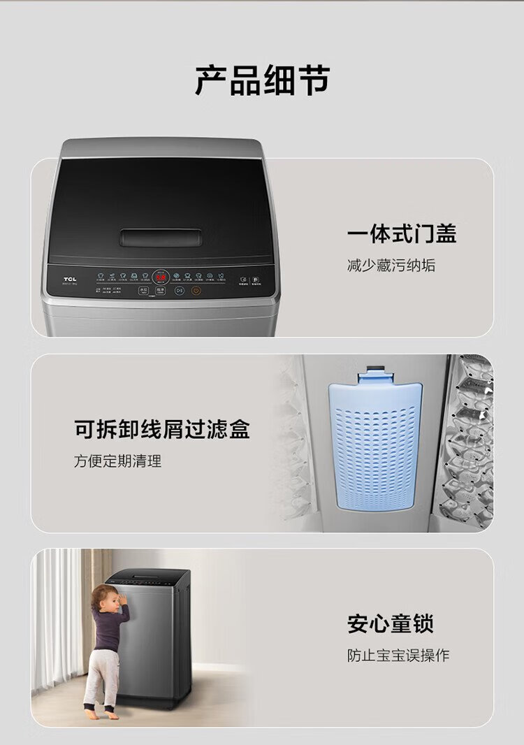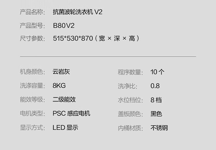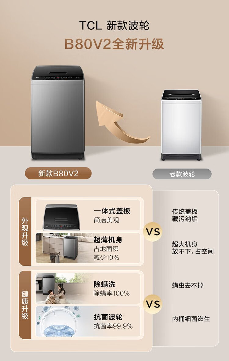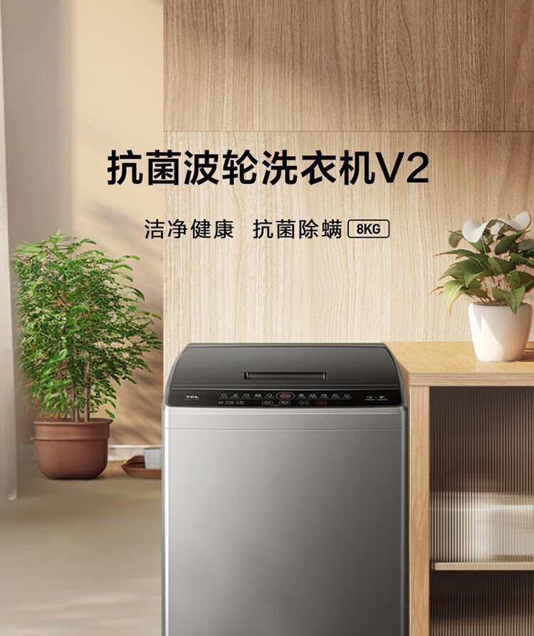 TCL 8公斤抗菌波轮洗衣机小型V2 除螨洗 宿舍租房 全自动家用 家电国家补贴 以旧换新 送装一体B80V2