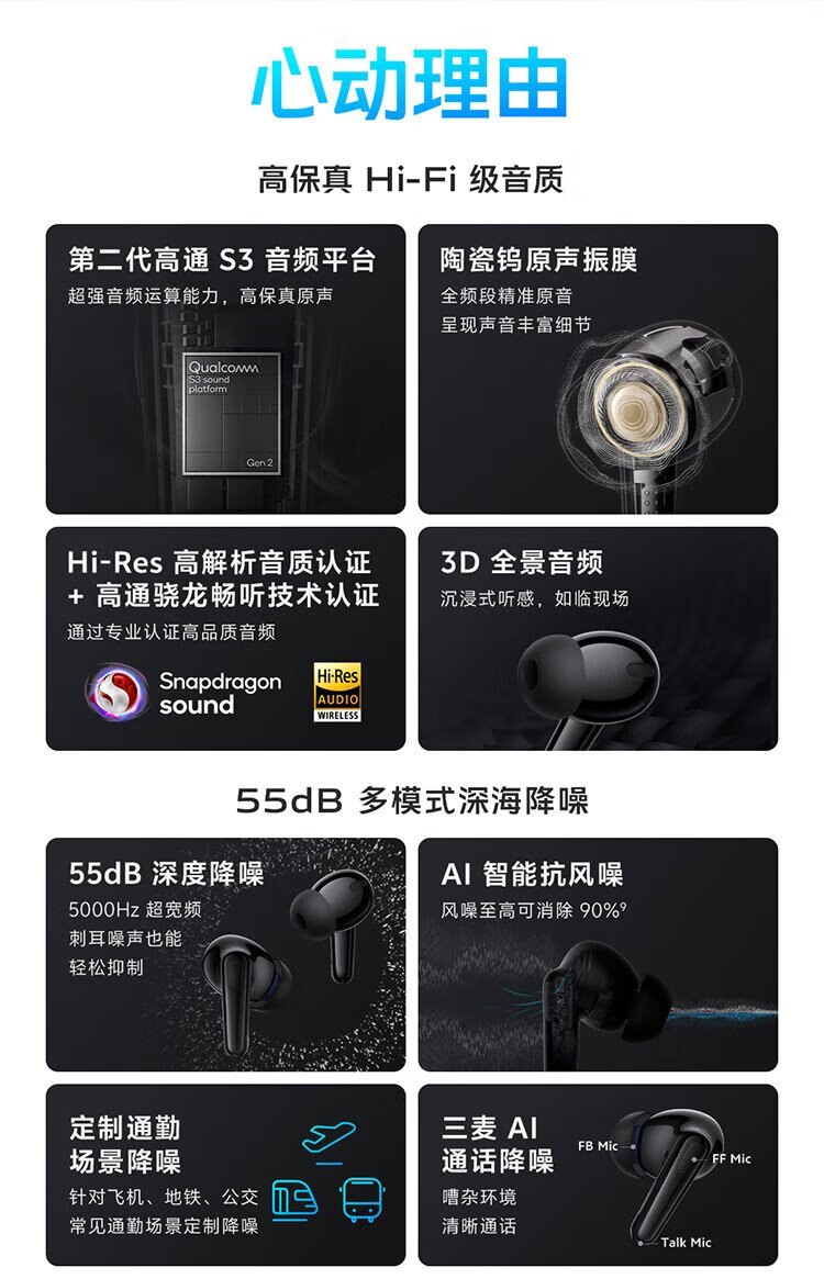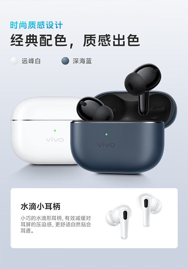 Vivo TWS 4 True Wireless Noise Canceling Headphones National Subsidy High Fidelity Hi-Fi Level Sound Quality 55dB Deep Sea Noise Reduction Universal Deep Sea Blue for Apple, Xiaomi, and Huawei Mobile Phones