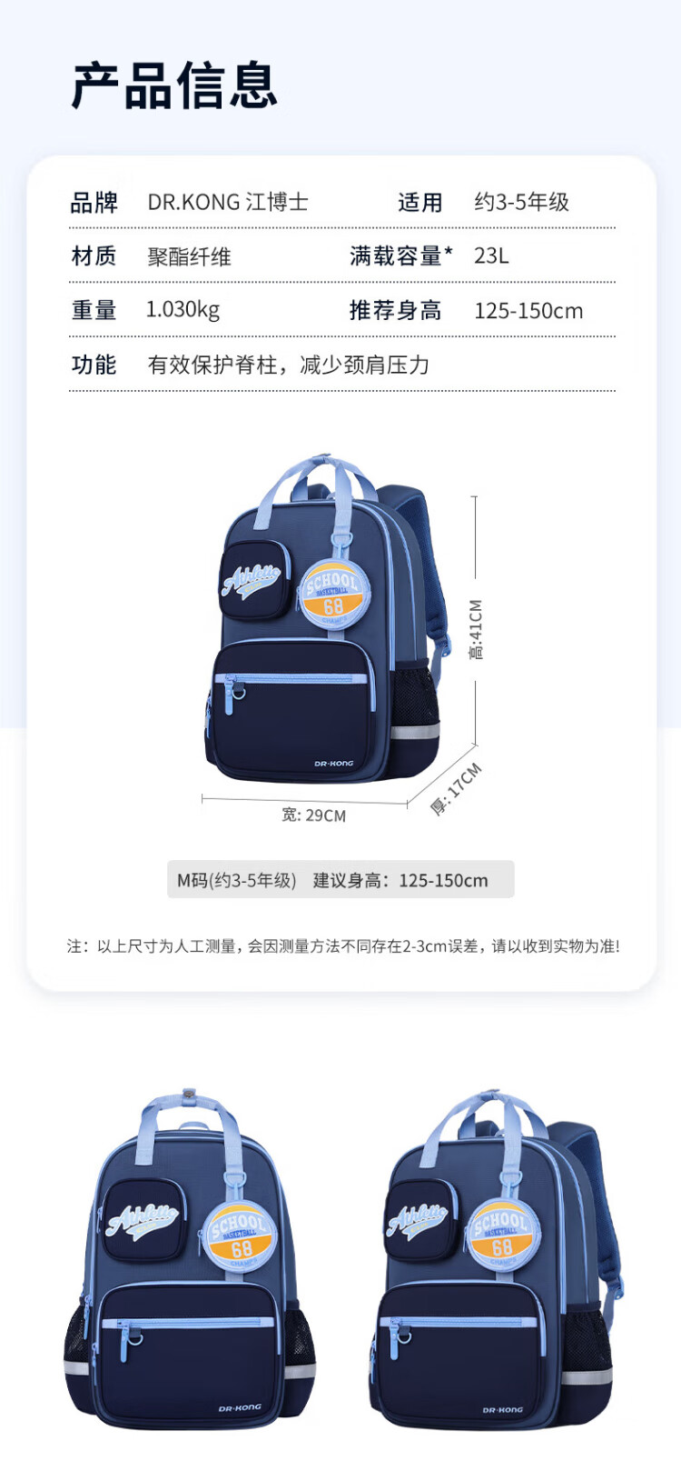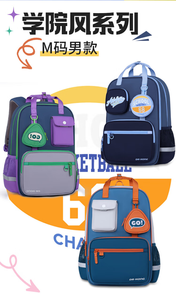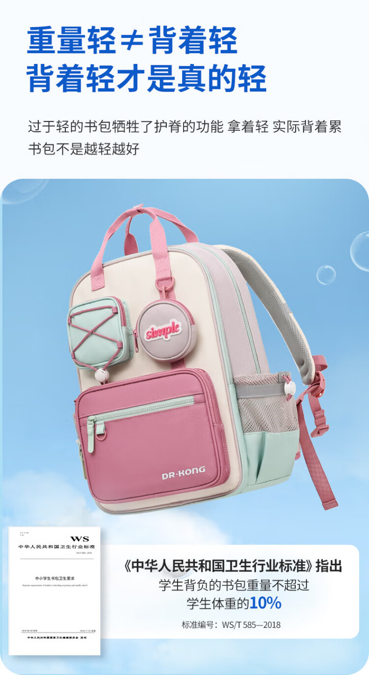 Dr. Jiang (DR KONG) schoolbag primary school girls 3-6th grade large-capacity spine protection and burden-reducing backpack men's lightweight children's backpack weight reduction