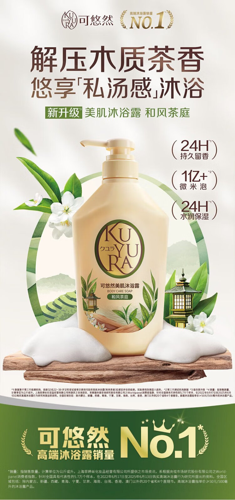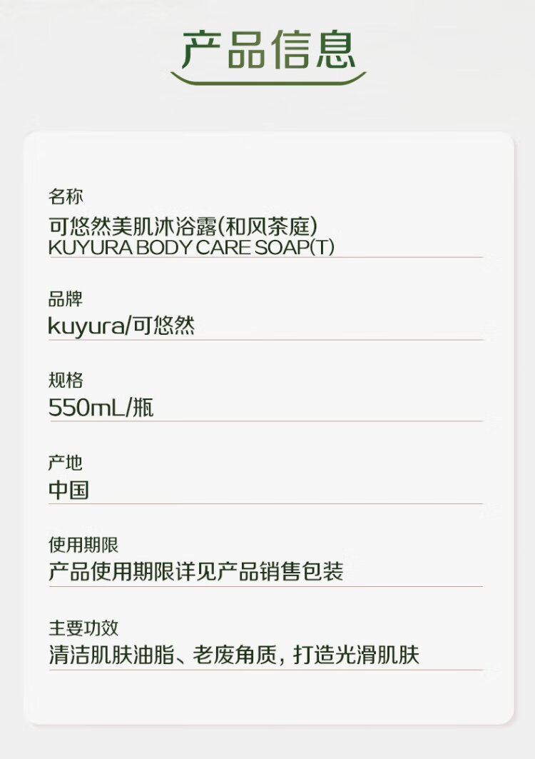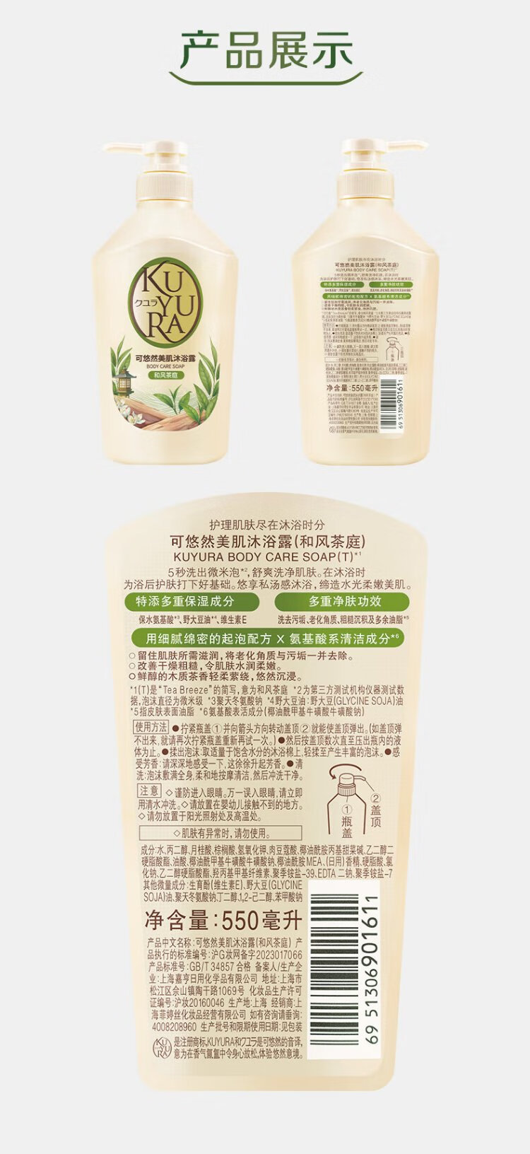 Keyouran Ding Yuxi's same style Japanese tea garden shower gel rhubarb bottle 550ml skin-beautifying fragrance moisturizing and refreshing