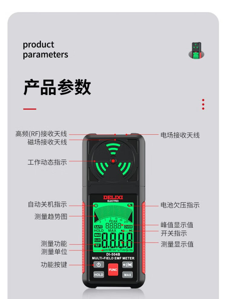 Delixi Electrical Electromagnetic Radiation Tester High Frequency DI504A Household Electromagnetic Field Radiation Detector