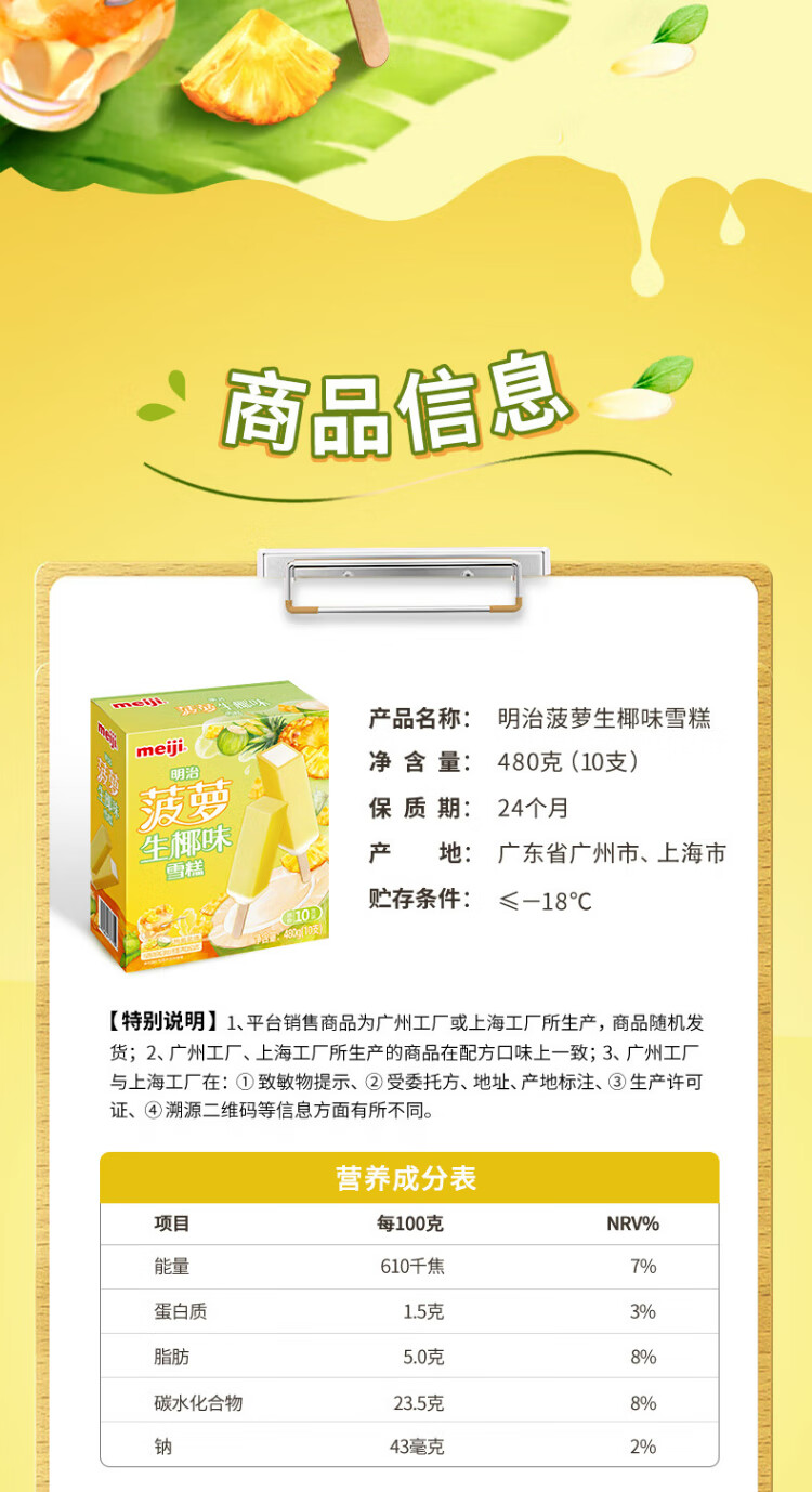 Meiji pineapple raw coconut flavor ice cream 48g*10 pieces in color box