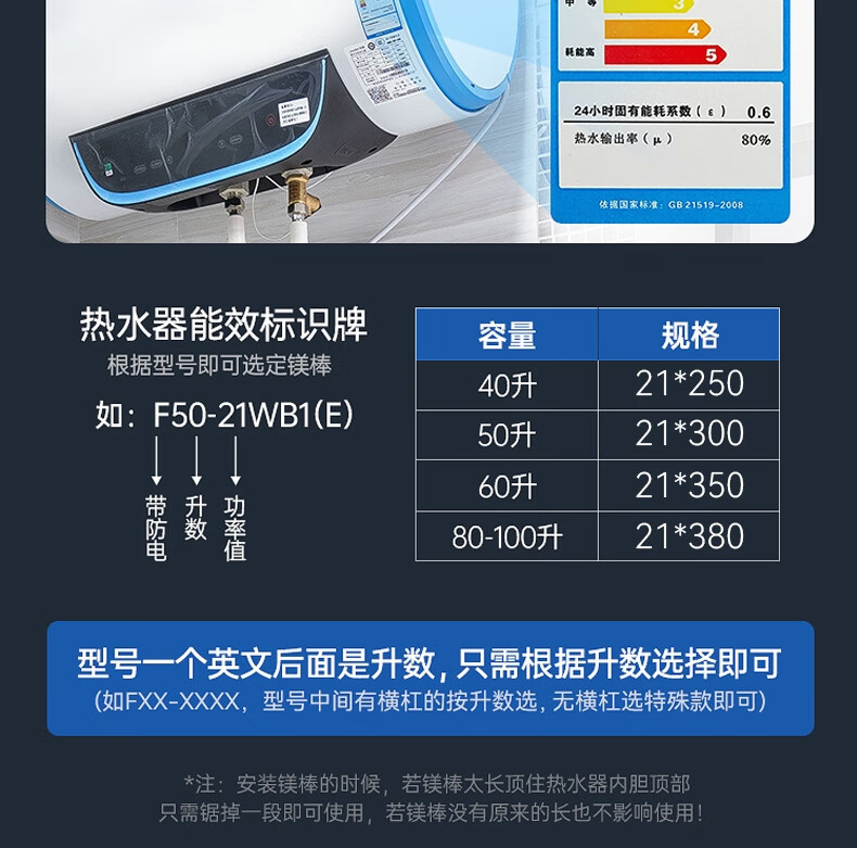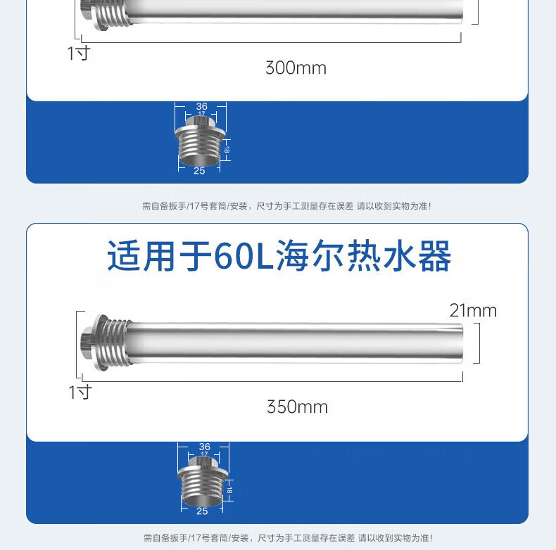 Pu Pai magnesium rod water heater universal magnesium rod suitable for Haier electric water heater magnesium rod 60 liters long 35 cm with nickel-plated nut Haier magnesium rod 60L