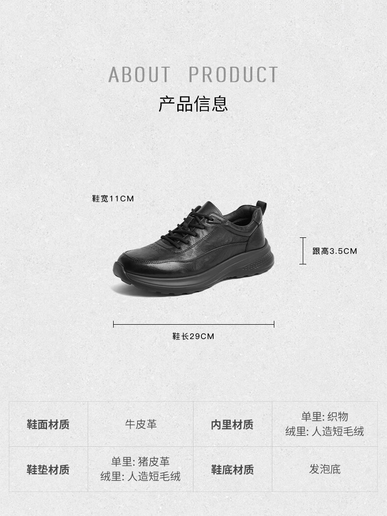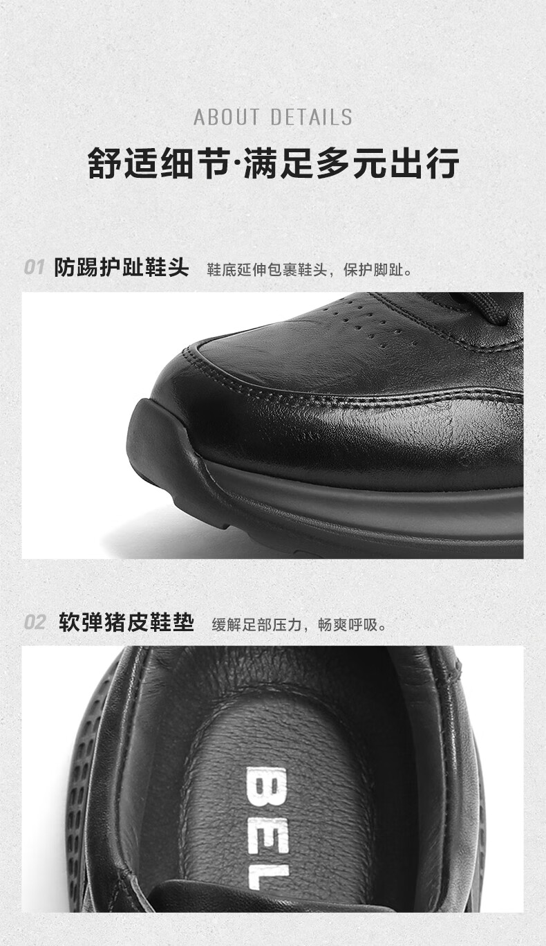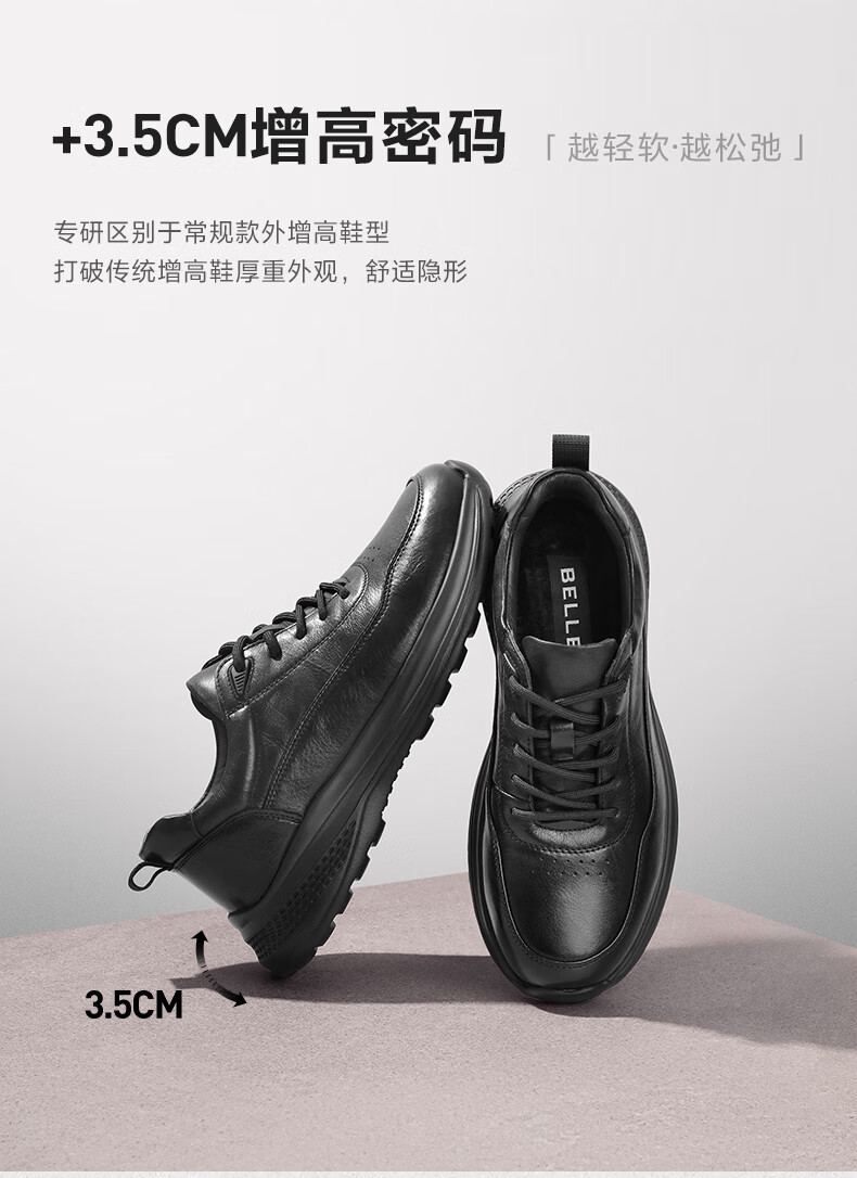Belle Trendy Comfortable Casual Shoes Men's Shoes Cowhide Business Sports Shoes A1354AM5 Black Velvet Lining 40
