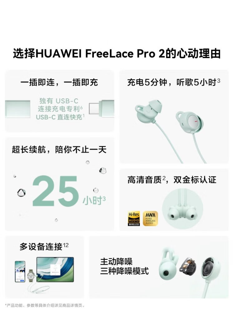 Huawei FreeLace Pro 2 Bluetooth headset, neck hanging, neck wear, direct connection, fast charging/high quality/long battery life/active noise reduction, Yadan Black