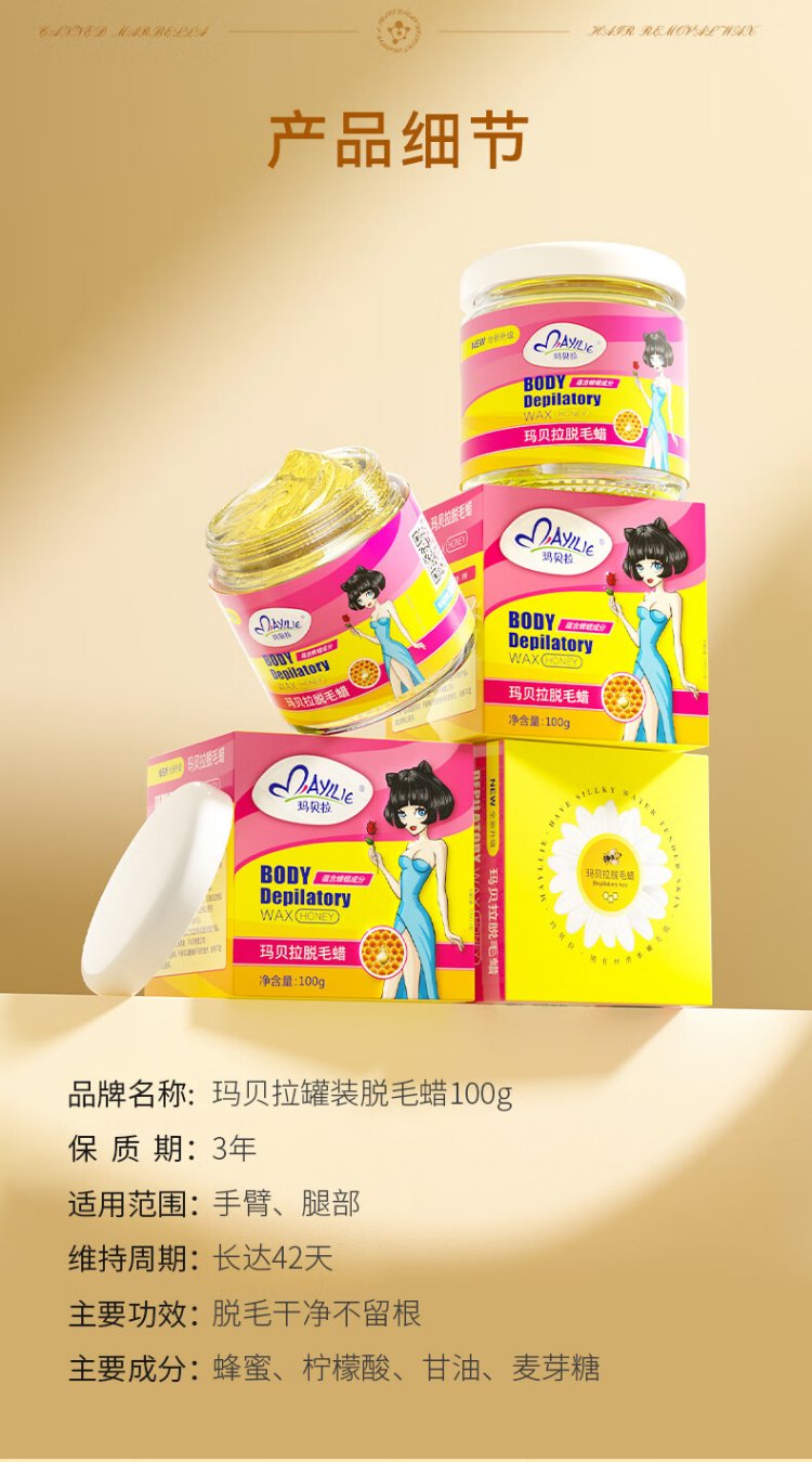 Marbella hair removal wax 100g hair removal beeswax for male and female students can use armpit hair limbs arm leg hair removal non-permanent