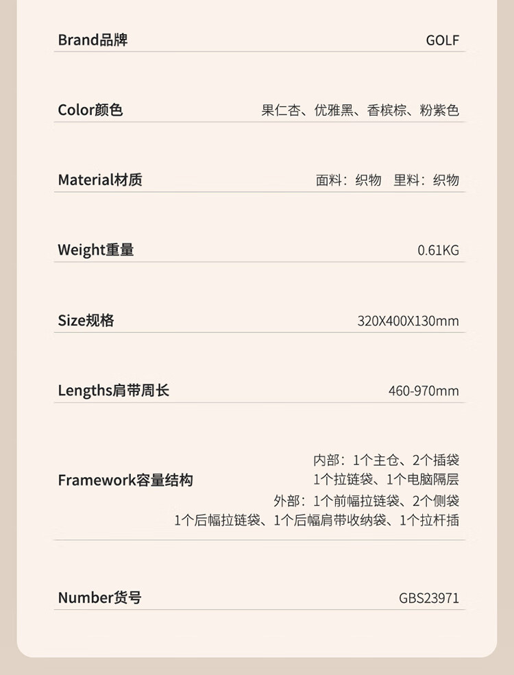 Golf (GOLF) backpack women's 14/16/17 inch laptop bag shoulder tote bag travel school bag business trip