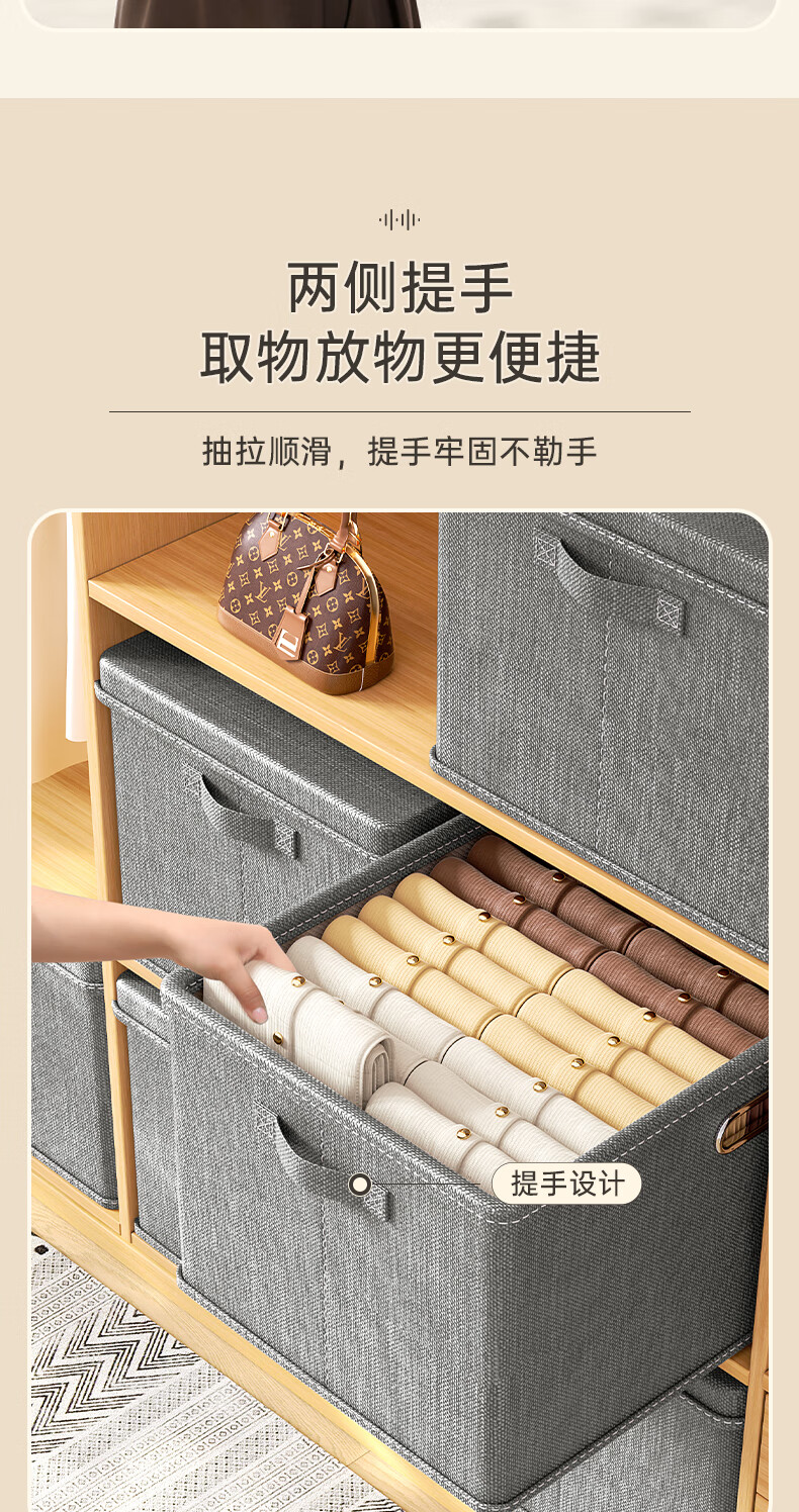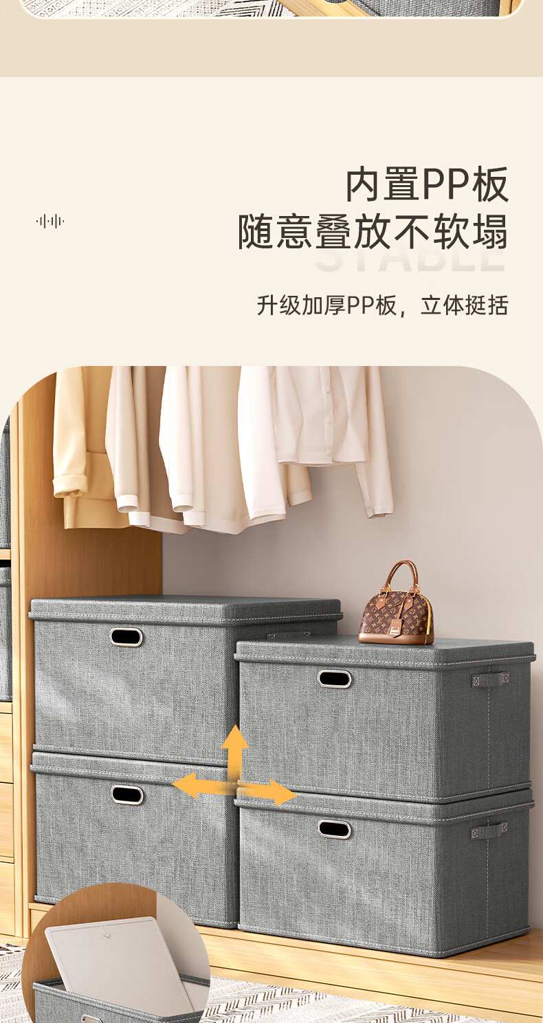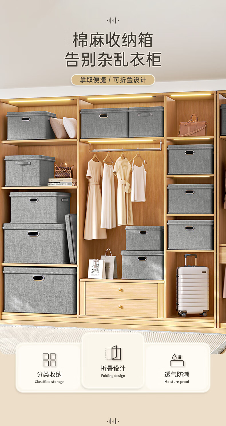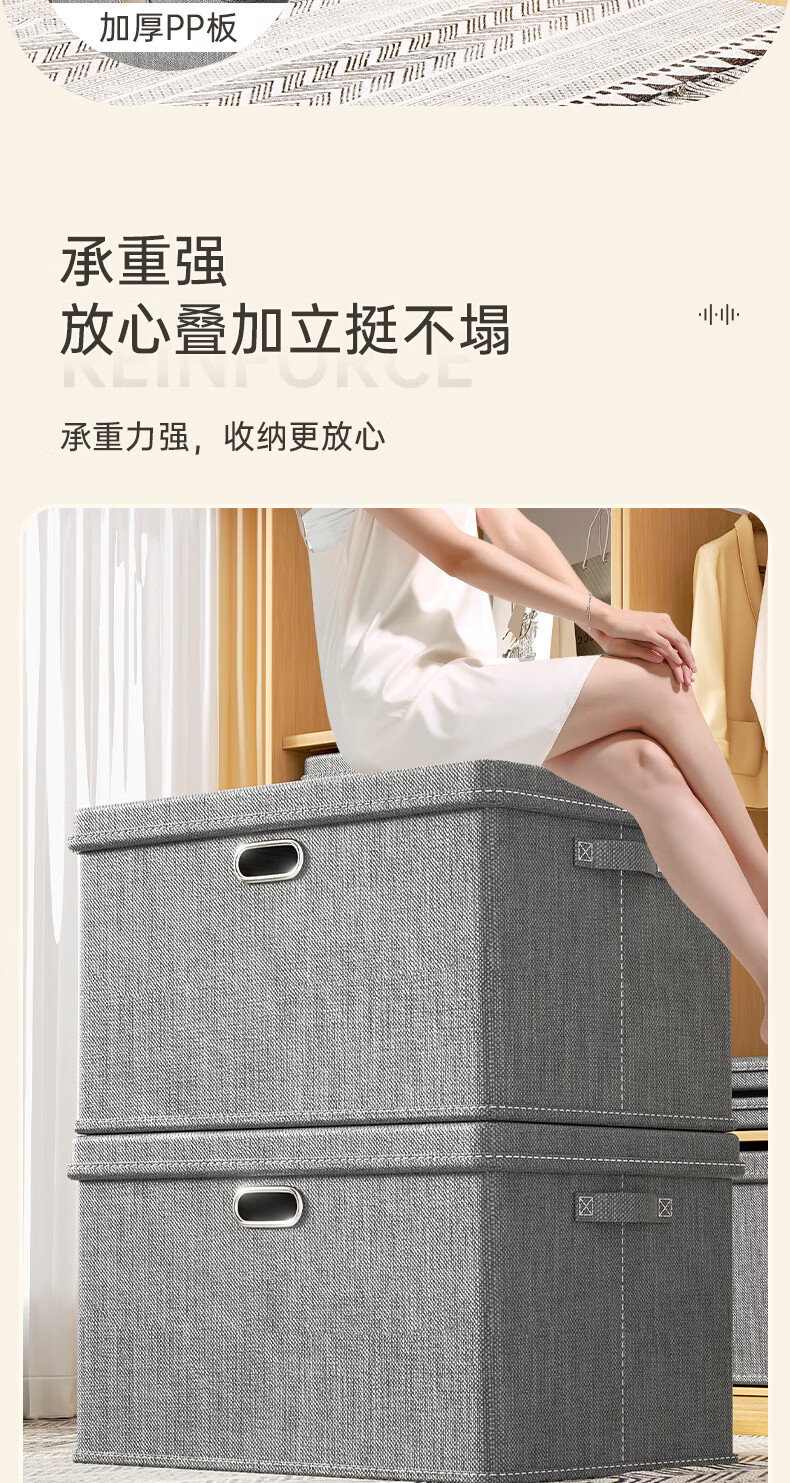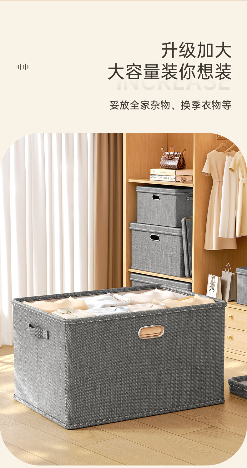 Bonnymeijia clothes storage box Japanese style bedroom storage box large capacity foldable storage box gray extra large