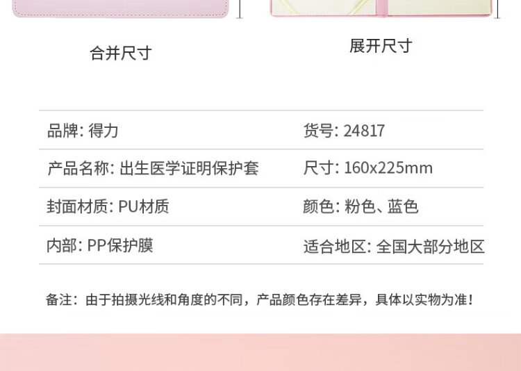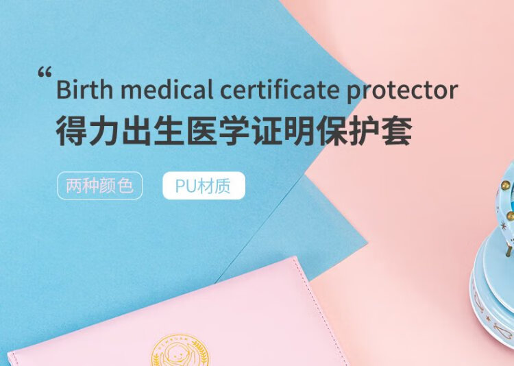 Deli Medical Birth Certificate Protective Case Document Leather Storage Bag Standard Size Universally Used Light Blue 24817