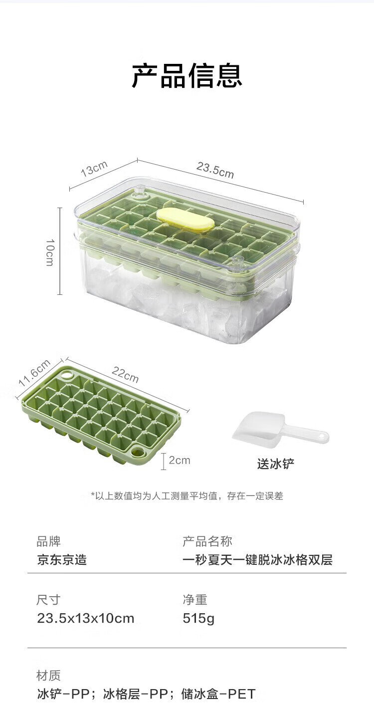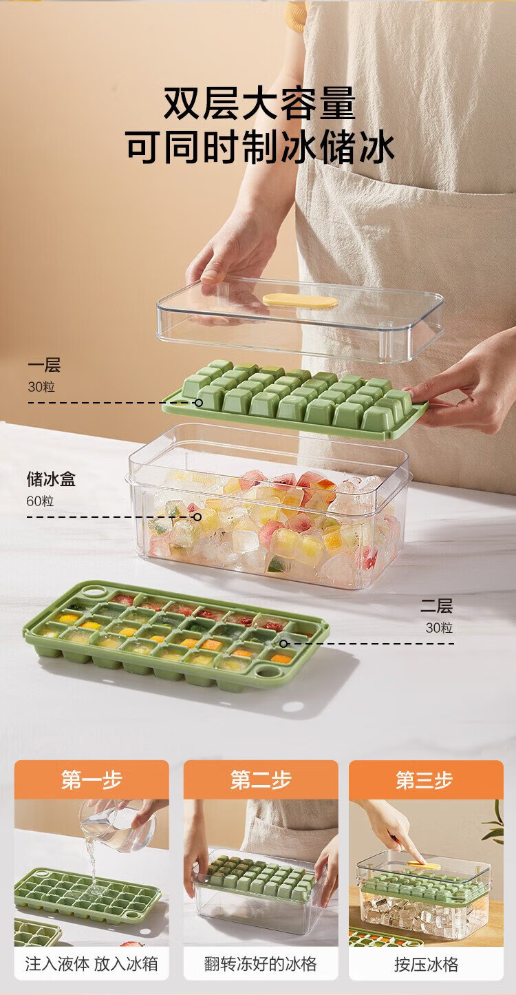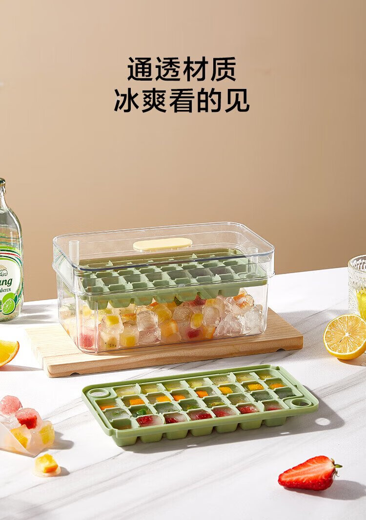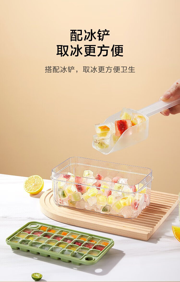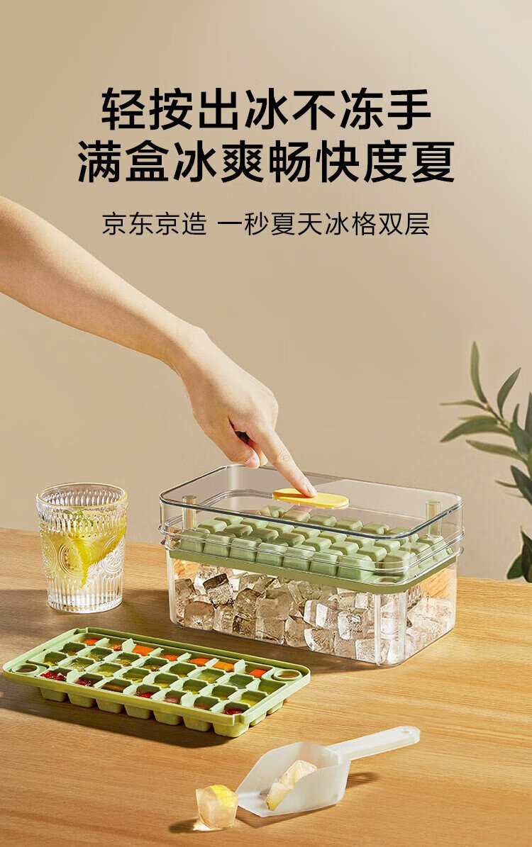 Made in Tokyo, ice cube mold, ice tray, frozen ice box, ice cube making artifact, with ice shovel (double layer, 60 pieces)