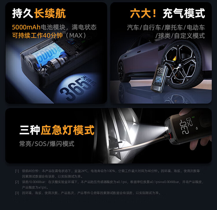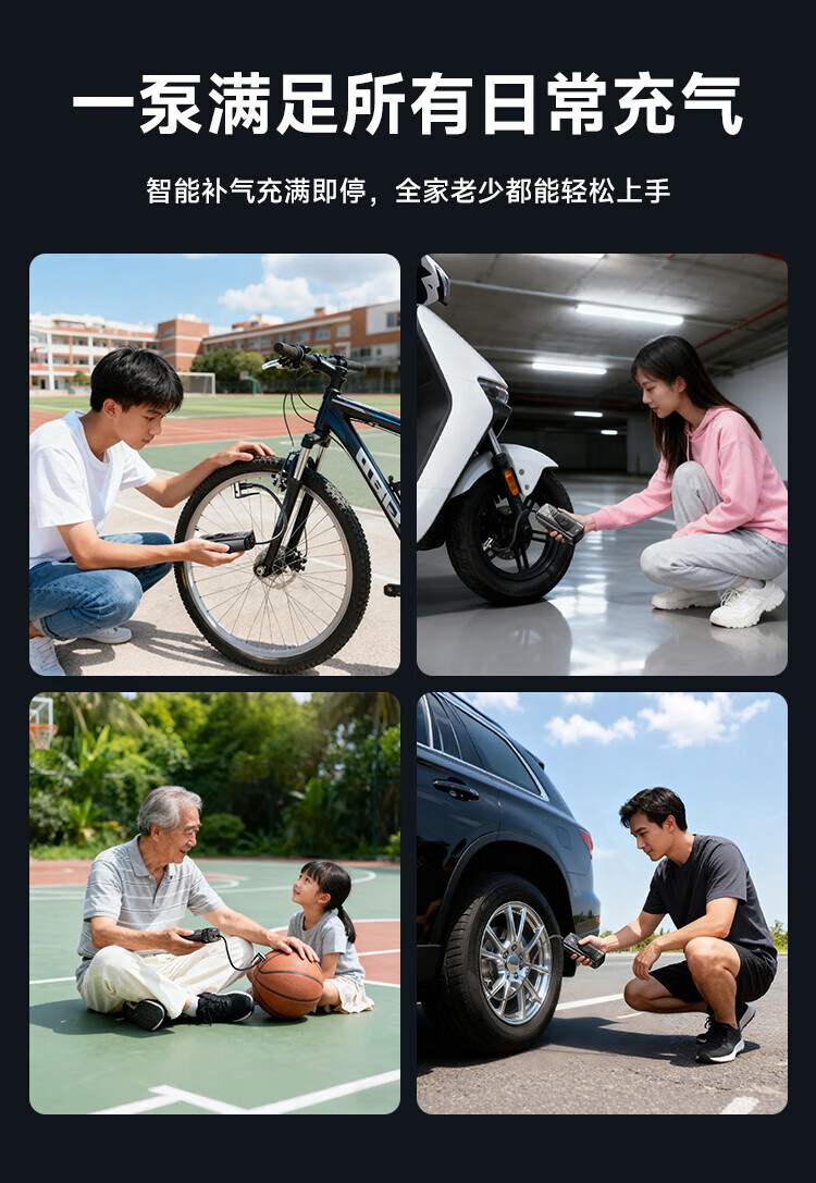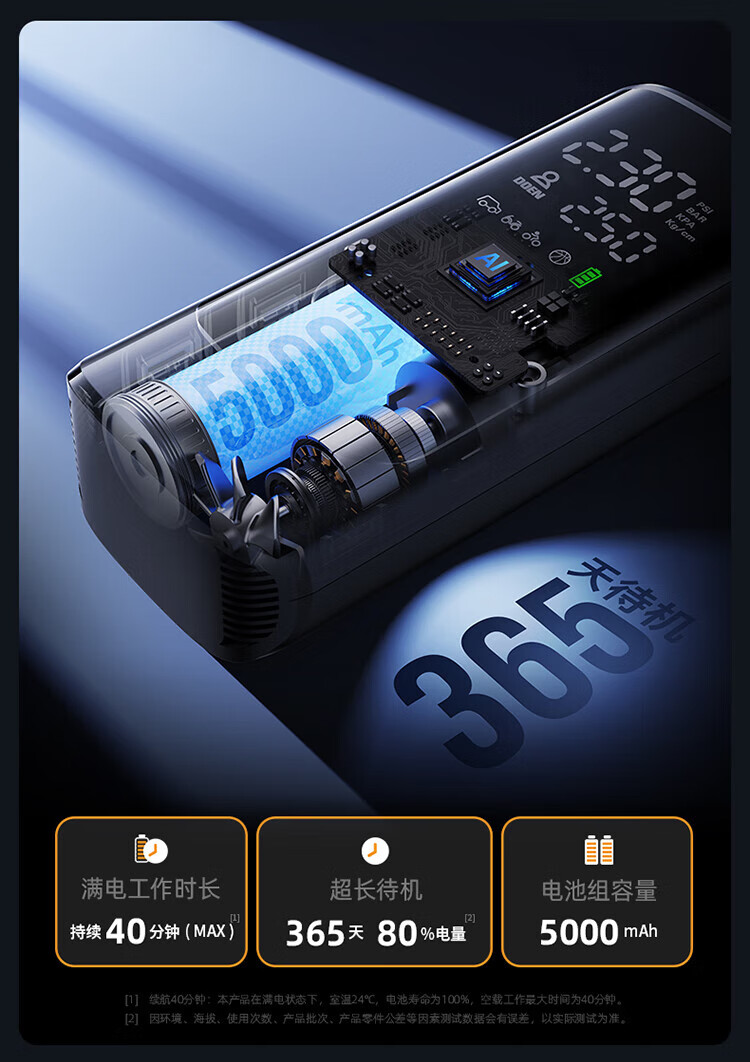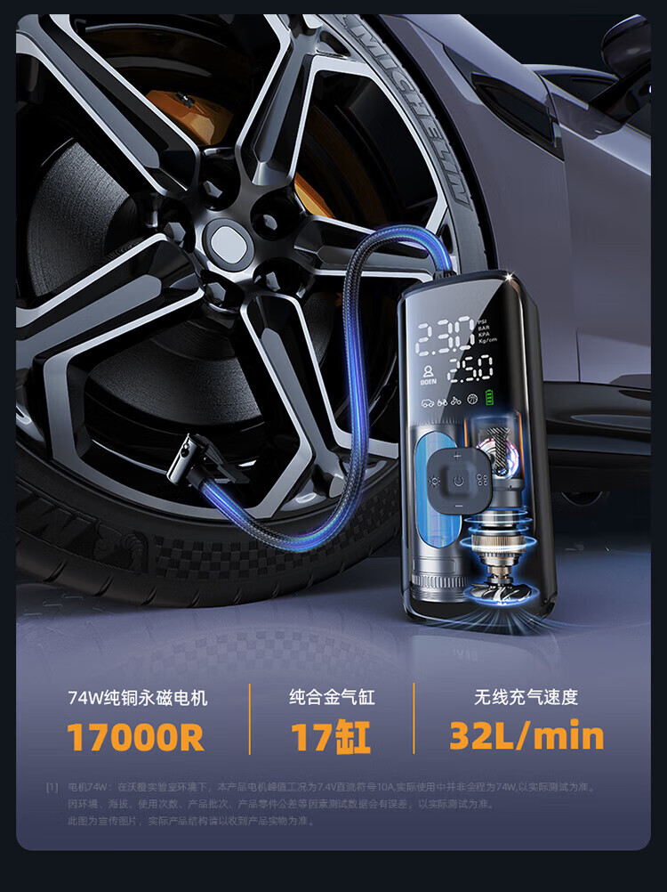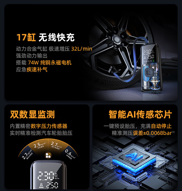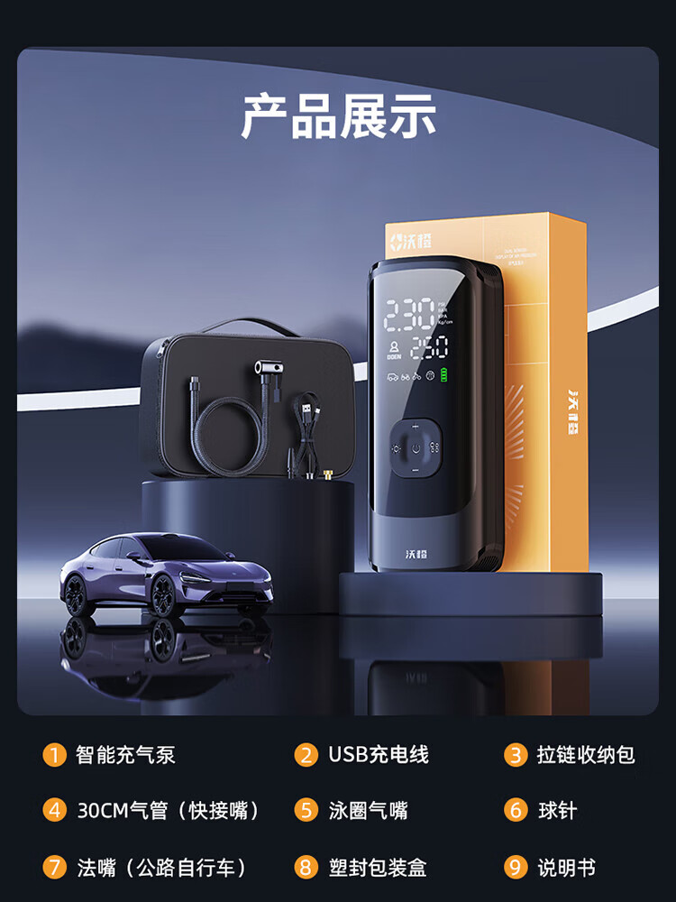 Wocheng car air pump car tire air pump bicycle electric car portable wireless inflatable treasure pressure measurement